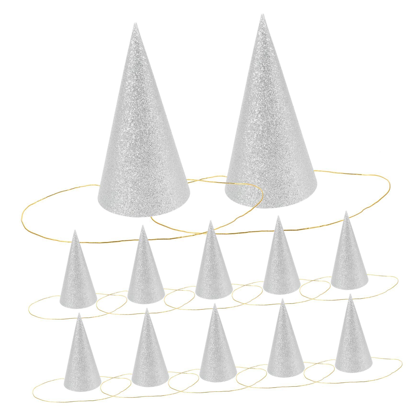 1 x 12個セット グリッターコーンパーティーハット 三角形の誕生日帽子 と大人用 パーティーデコレーション (シルバー)