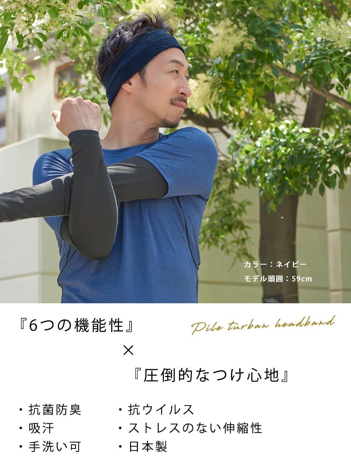 [CHARM] 日本製 のびのび パイル ヘアバンド (2本セット) タオル地で優しい肌触り (フリーサイズ) スポーツ (抗菌防臭/吸汗/抗ウイルス) ターバン 全6色展開