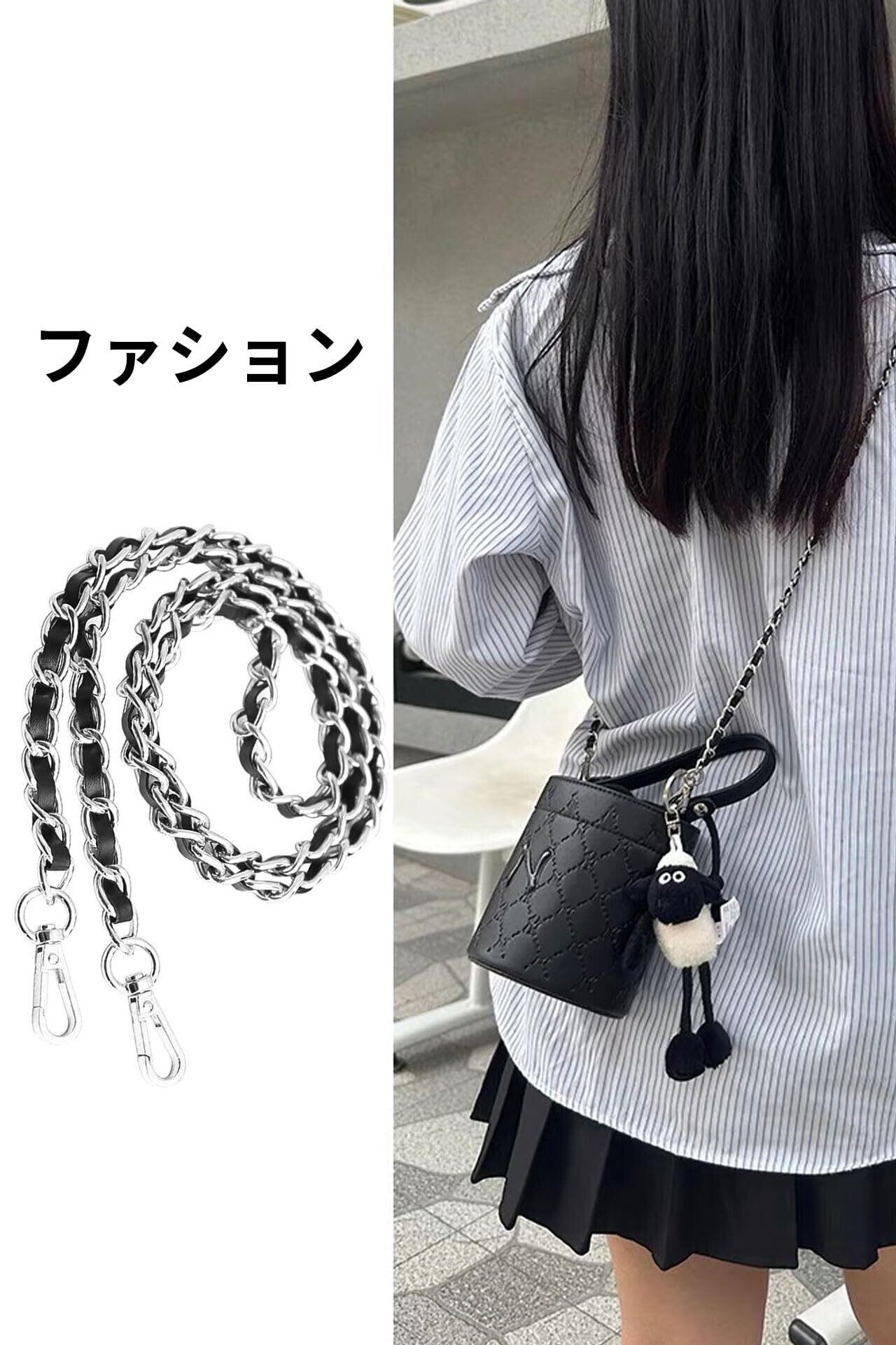 【おしゃれなチェーンデザイン!】この[VEAGIA]のショルダーストラップは、シンプルながら洗練された黒と銀のチェーンデザインが特徴です。どんなバッグにも合い、あなたのスタイルを引き立てます!