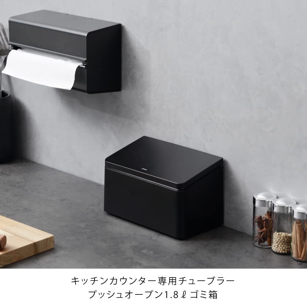 キッチンカウンターで使うチューブラー、プッシュオープン1.8Lゴミ箱。 アイランドキッチンなど見せるキッチンが増える中、ゴミ箱もスタイリッシュに。