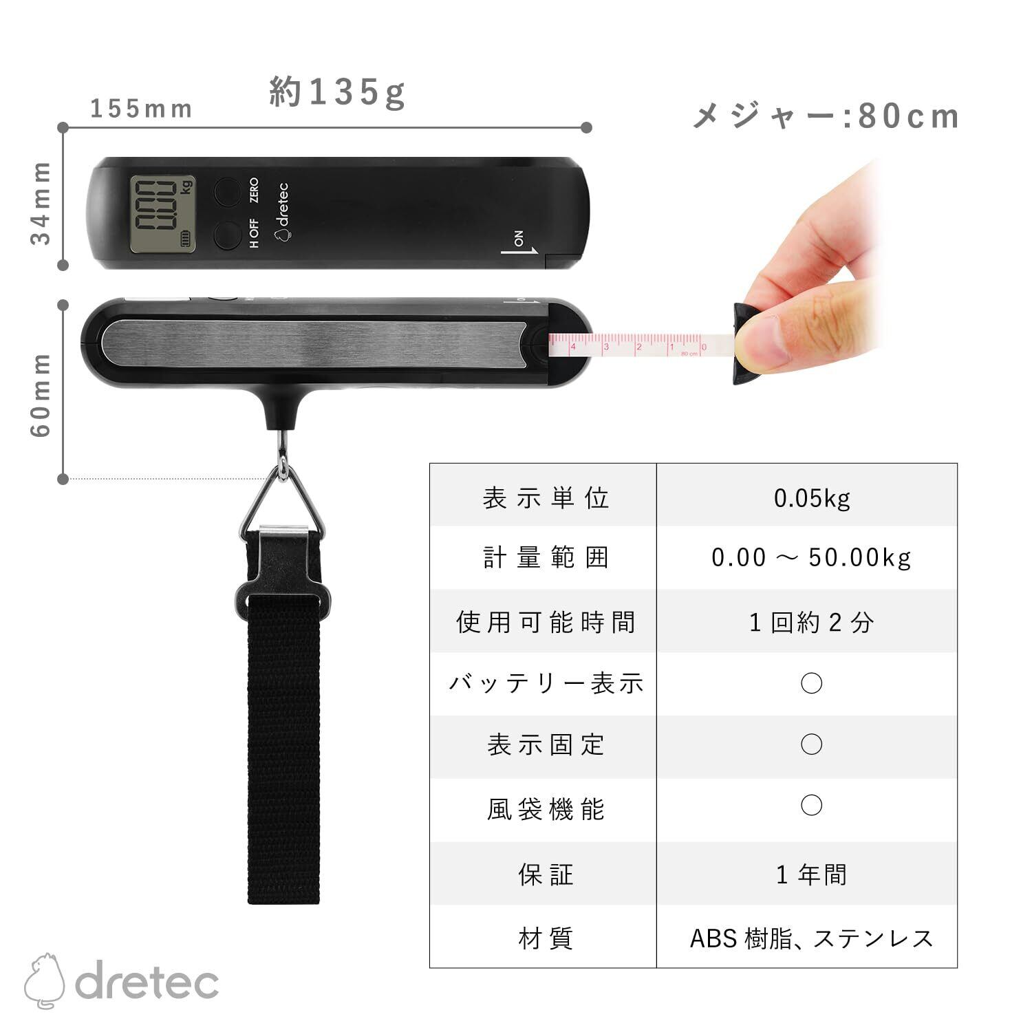 ドリテック(dretec) 【モヤさまEXPO 放映】 メジャー付きラゲッジスケール 発電タイプで電池不要 旅行はかり 荷物はかり 吊り下げ デジタル 風袋引き機能 50kg 旅行グッズ 便利グッズ はかり スケール トラベルグッズ 三角スケール 飛行機 快適グッズ トラベル 旅行 海外 国内 電池不要 LS-108BK