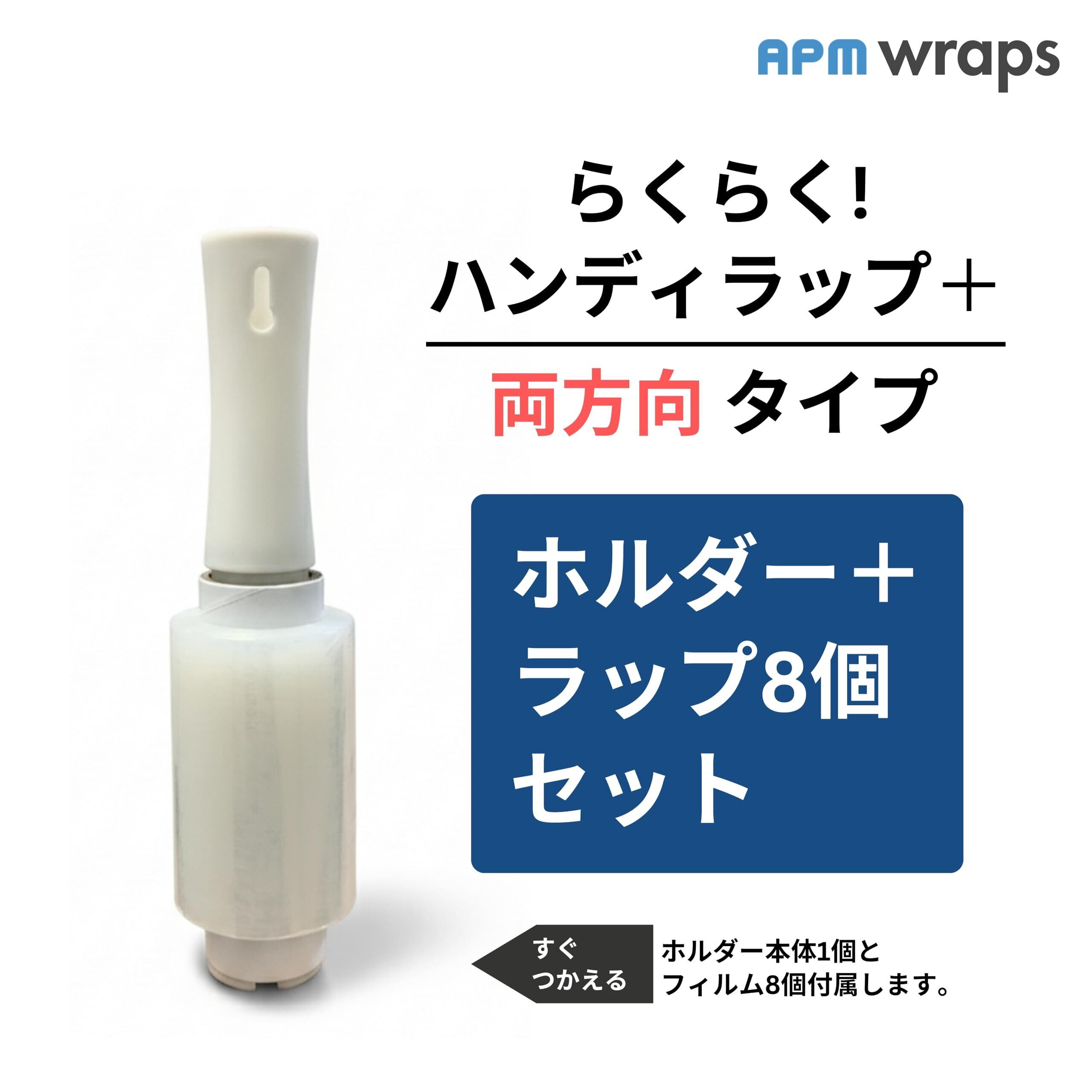 APMジャパン 梱包用ラップ ホルダー+ラップ8個セット 幅10cm×150m 15μ|らくらくハンディラップ ミニ ストレッチフィルム|20μ相当強化フィルム|左右両方向対応|箱売り