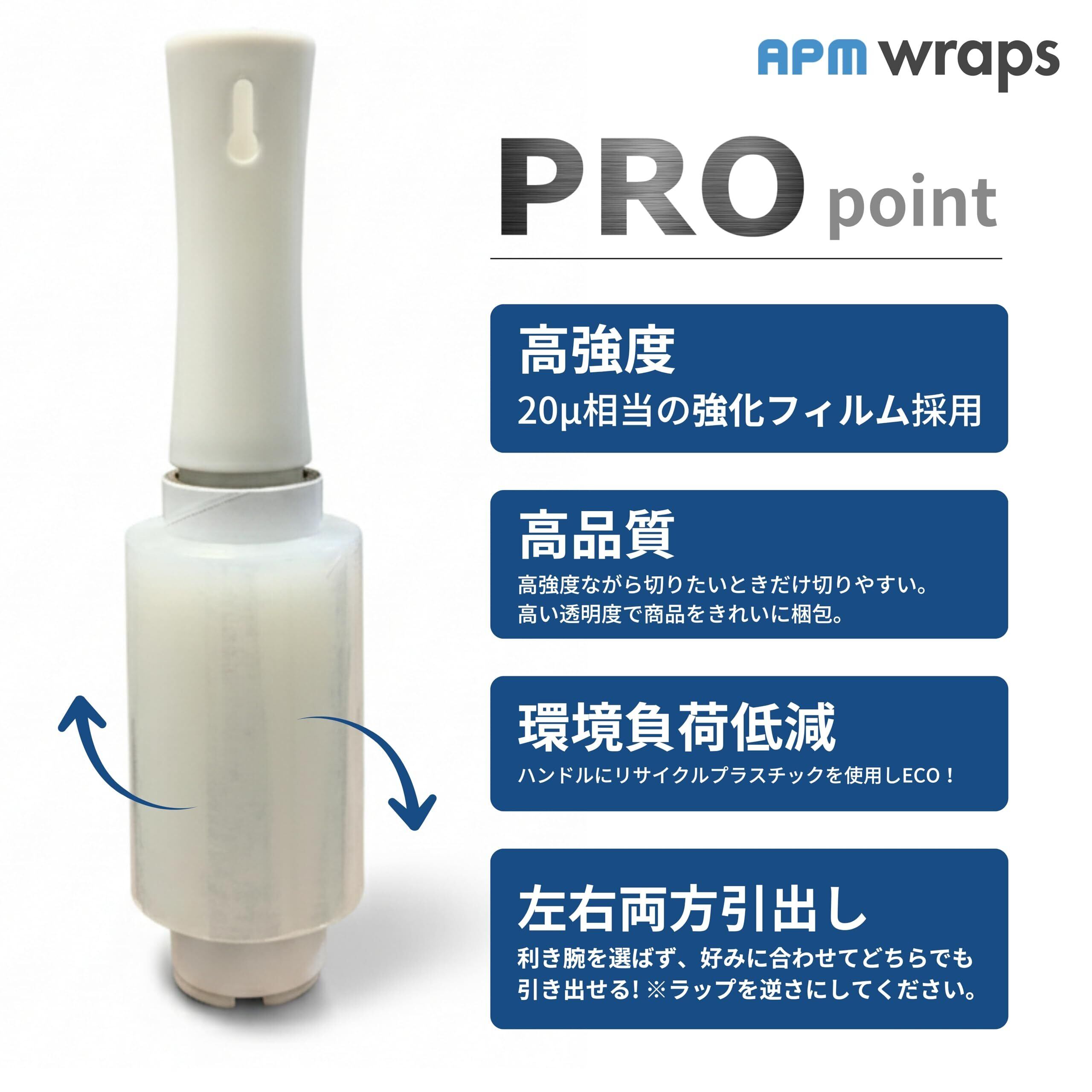 APMジャパン 梱包用ラップ ホルダー+フィルム8個セット 幅10cm×150m巻 15μ らくらくハンディラップ ミニ ストレッチフィルム 20μ相当強化フィルム 引出し左右両方向対応 【箱売り】