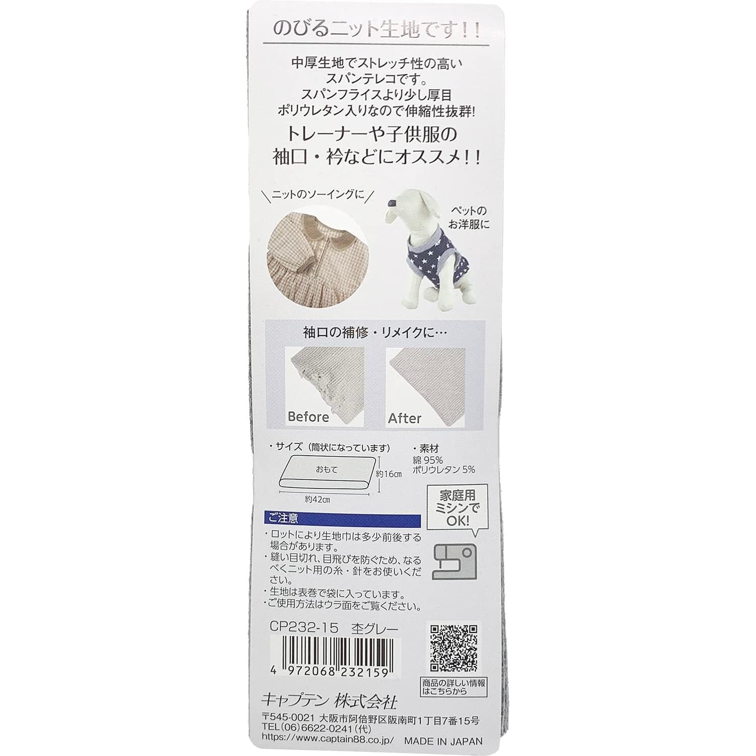 CAPTAIN88 キャプテン リブ ニット 生地 スパンテレコ 巾16cm×42cm 丸編 #15 杢 グレー CP232