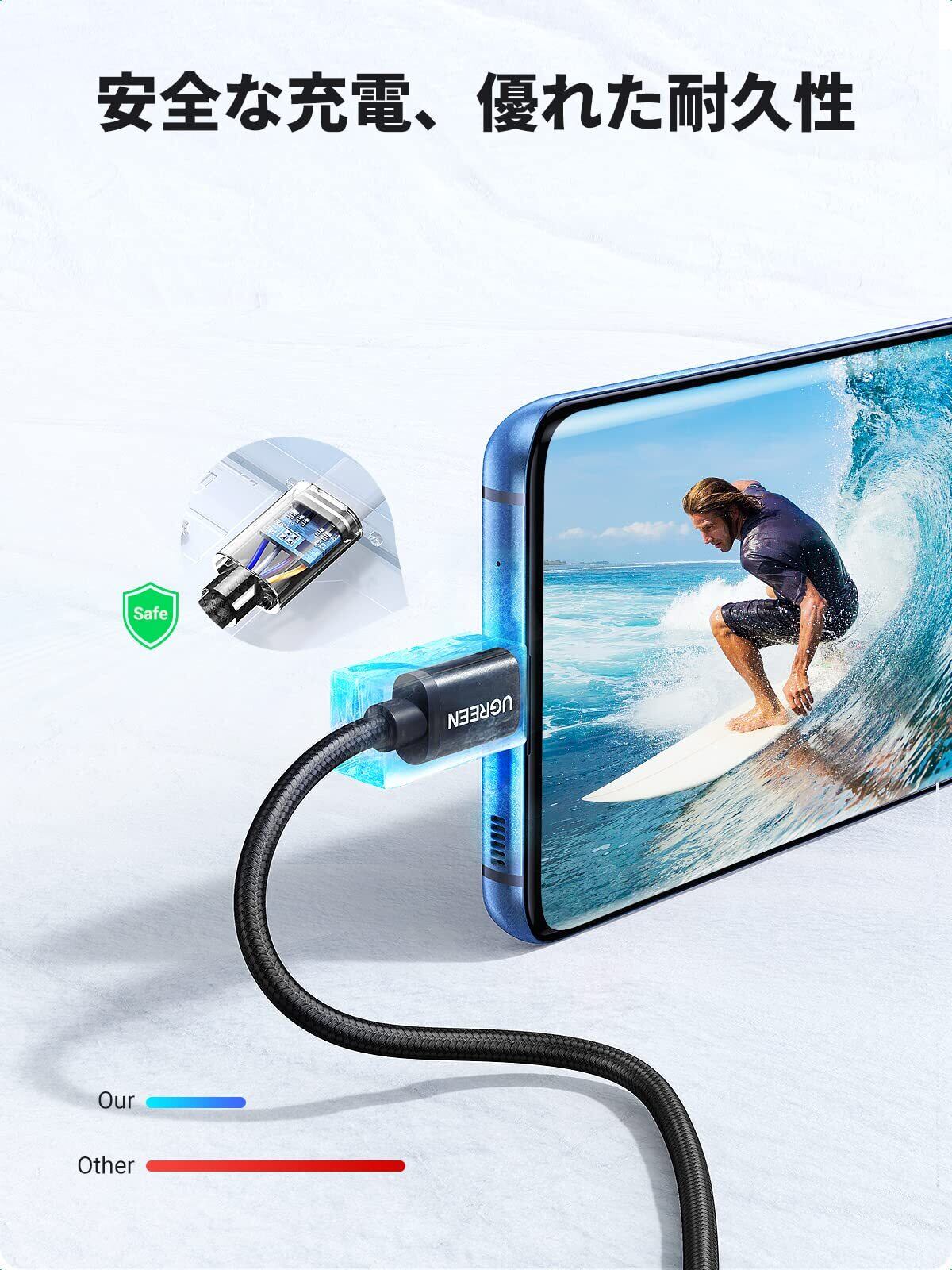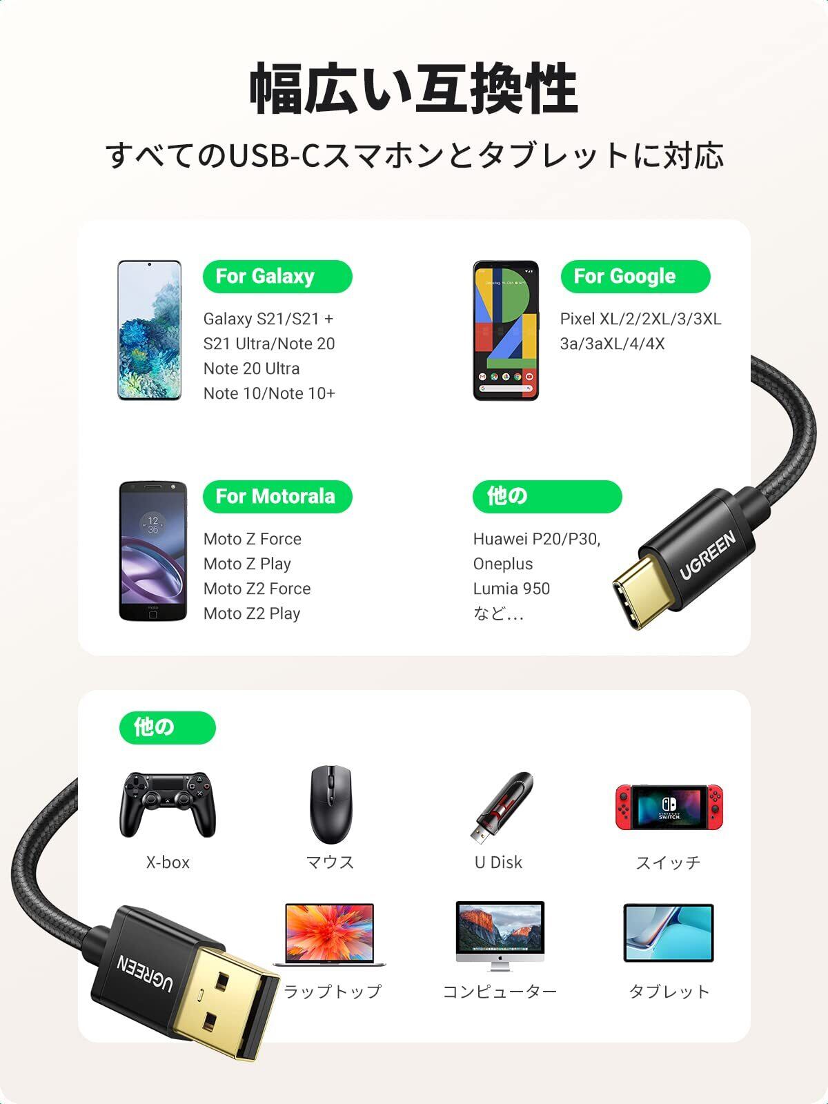 【数量限定】UGREEN USB Type C ケーブル 2本セット 急速充電 ナイロン編み 金メッキ USB A to USB C Quick Charge 3.0 アンドロイド充電コード Xperia XZ、Aquos R、Galaxy S9/S8/S8 Plus、Android タイプc対応 2m(2本セット)