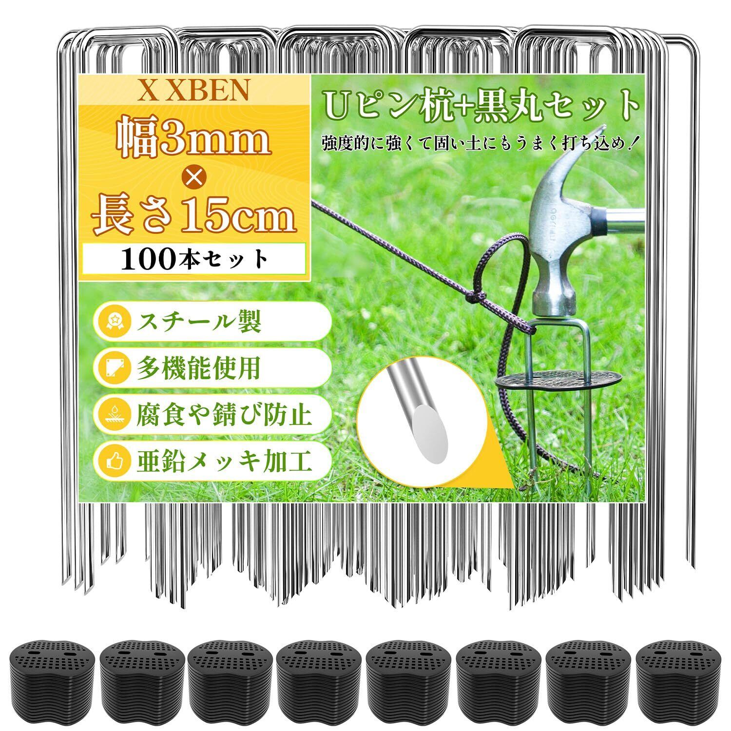 【在庫処分】X XBEN 防草シート 固定ピン 黒丸付き 幅3mm 長さ15cm 100本セット 除草シート Uピン杭 雑草防止シート 園芸シート杭 人工芝 ピン ビニールマルチ 固定用 押さえピン 農業用防虫ネット フック コ型ピン 農業用 変形に強い ステンレス 釘