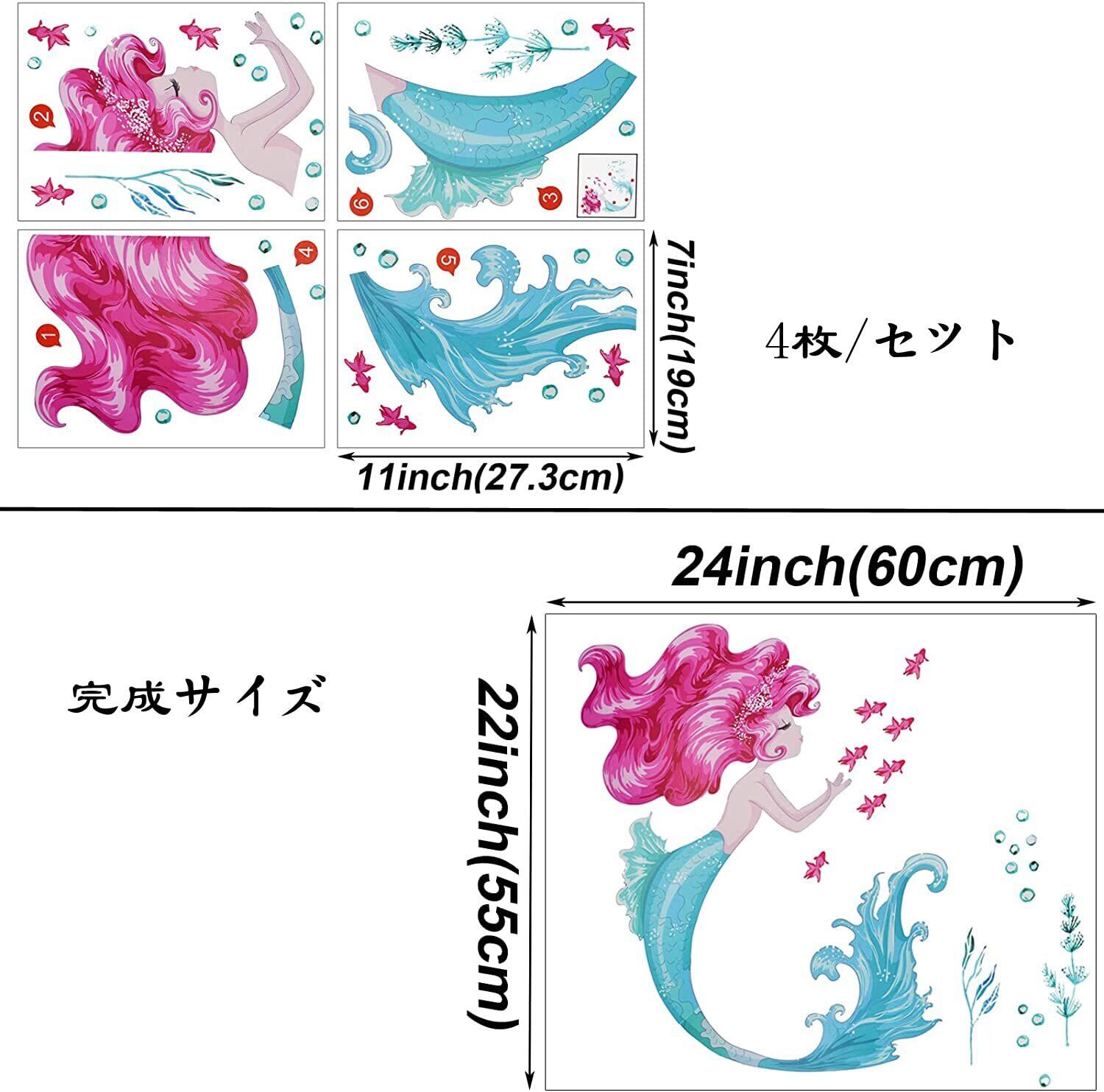 4枚/セットのマーメイドウォールステッカー,商品のサイズ:約19 x27CM,素材:PVC