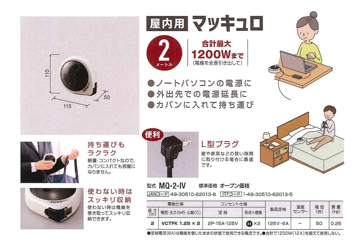 ハタヤ コードリール マッキュロ 2m 屋内用 アイボリー MQ-2-IV