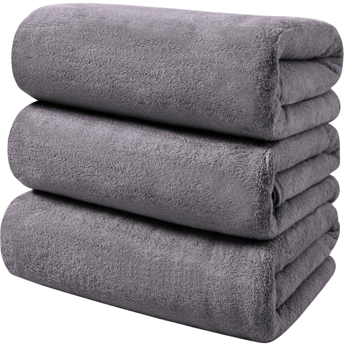AYO バスタオル ふわふわ ホテル仕様 大判 瞬間吸水 60*120cm 3枚セット マイクロファイバー 強い吸水速乾 肌触り グレー