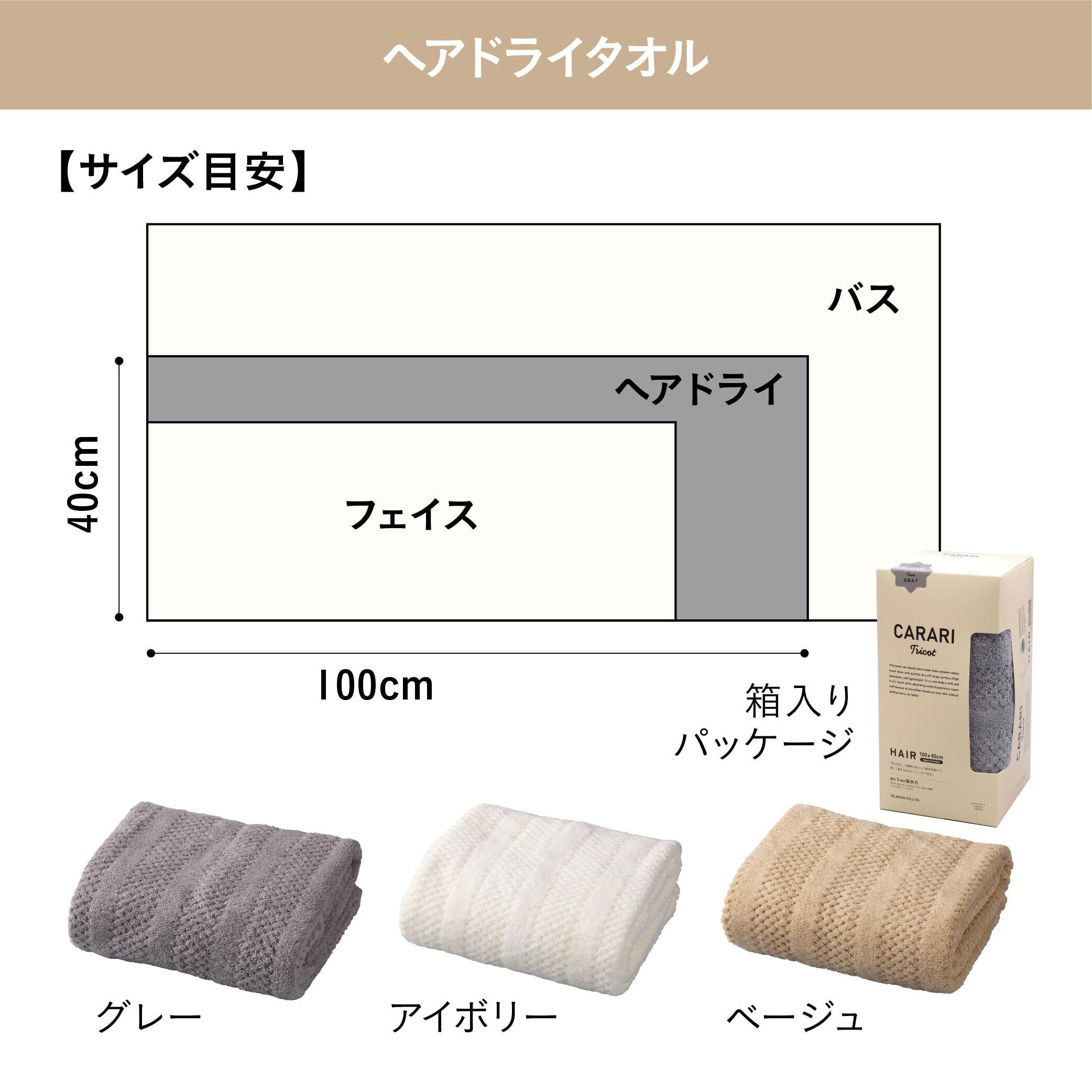 carari(カラリ) ヘアドライタオル 吸水力[5倍]のマイクロファイバー tricot アイボリー 繊維の隙間に素早く吸水 速乾 もっちり肌触り 40×100cm シービージャパン カラリトリコ