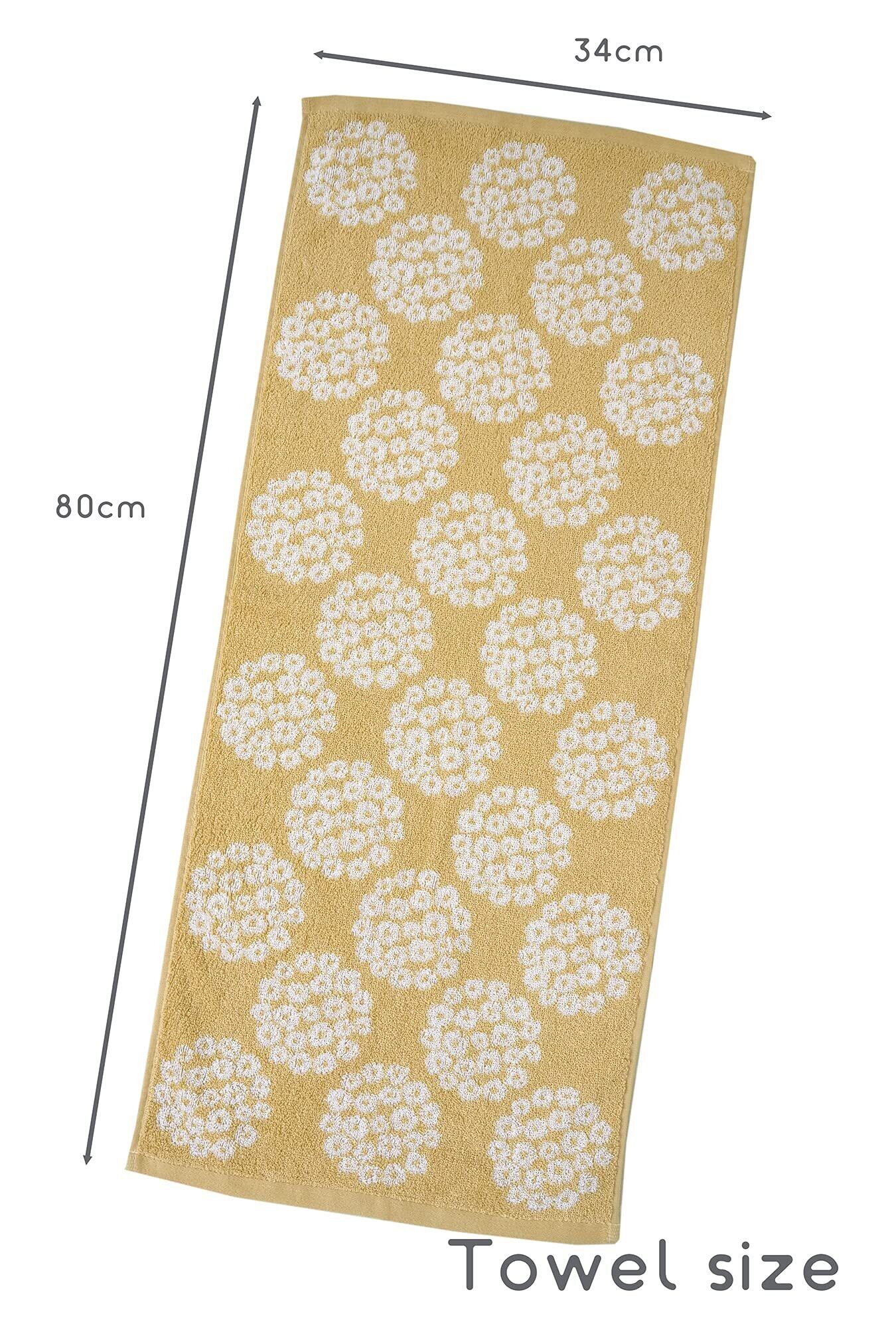「花束」をモチーフにつくられたデザイン。少しくすんだ色合いが優しいイメージとぴったりです。普通の糸より、撚りが甘いあま撚り糸を使った、ふんわりと肌触りのやさしいタオルです。