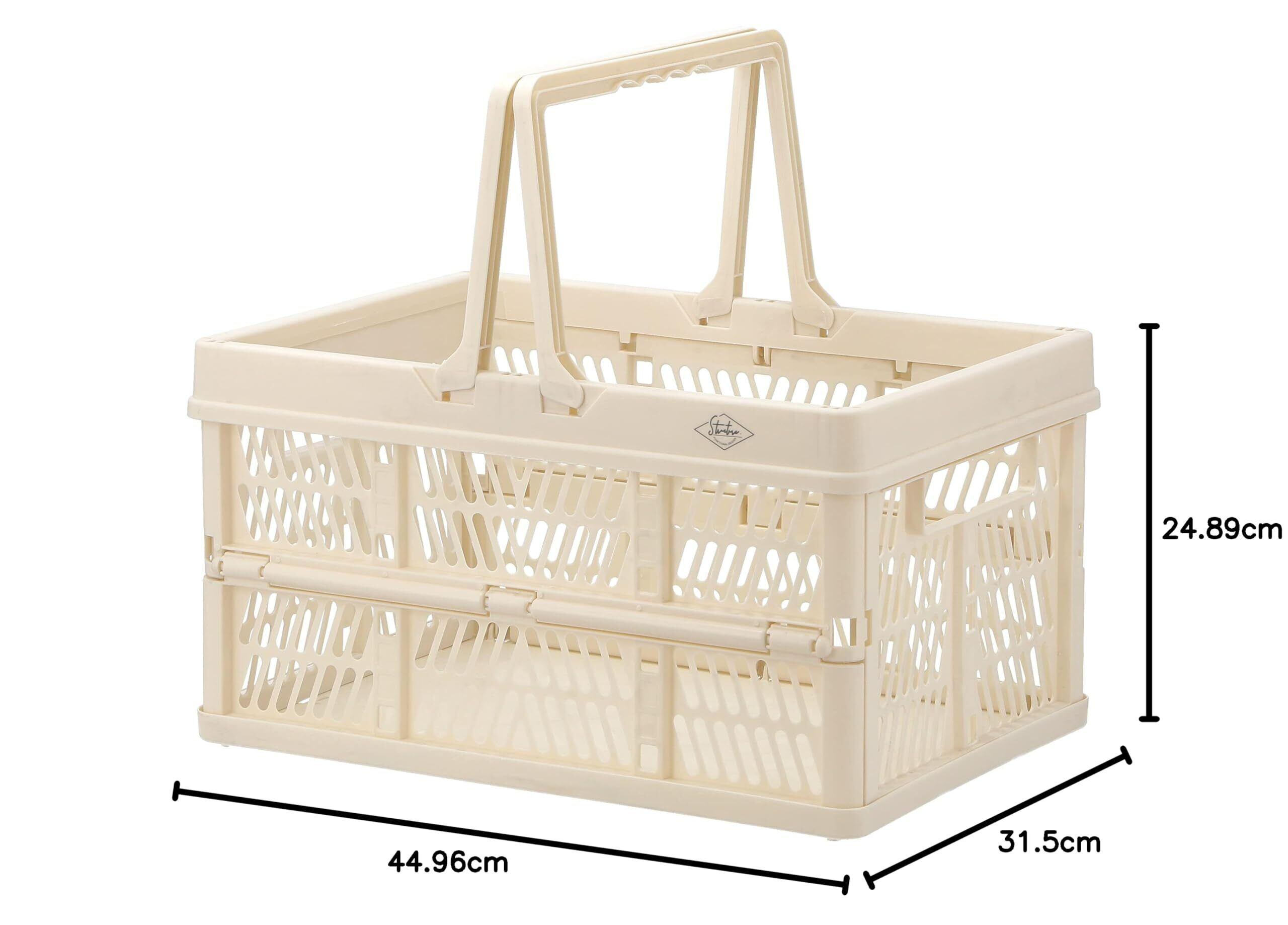 不二貿易 折りたたみ コンテナ かご 幅45×奥行31.5×高さ25㎝ ホワイト 取っ手付き 持ち運び簡単 内容量26L Lサイズ 86448