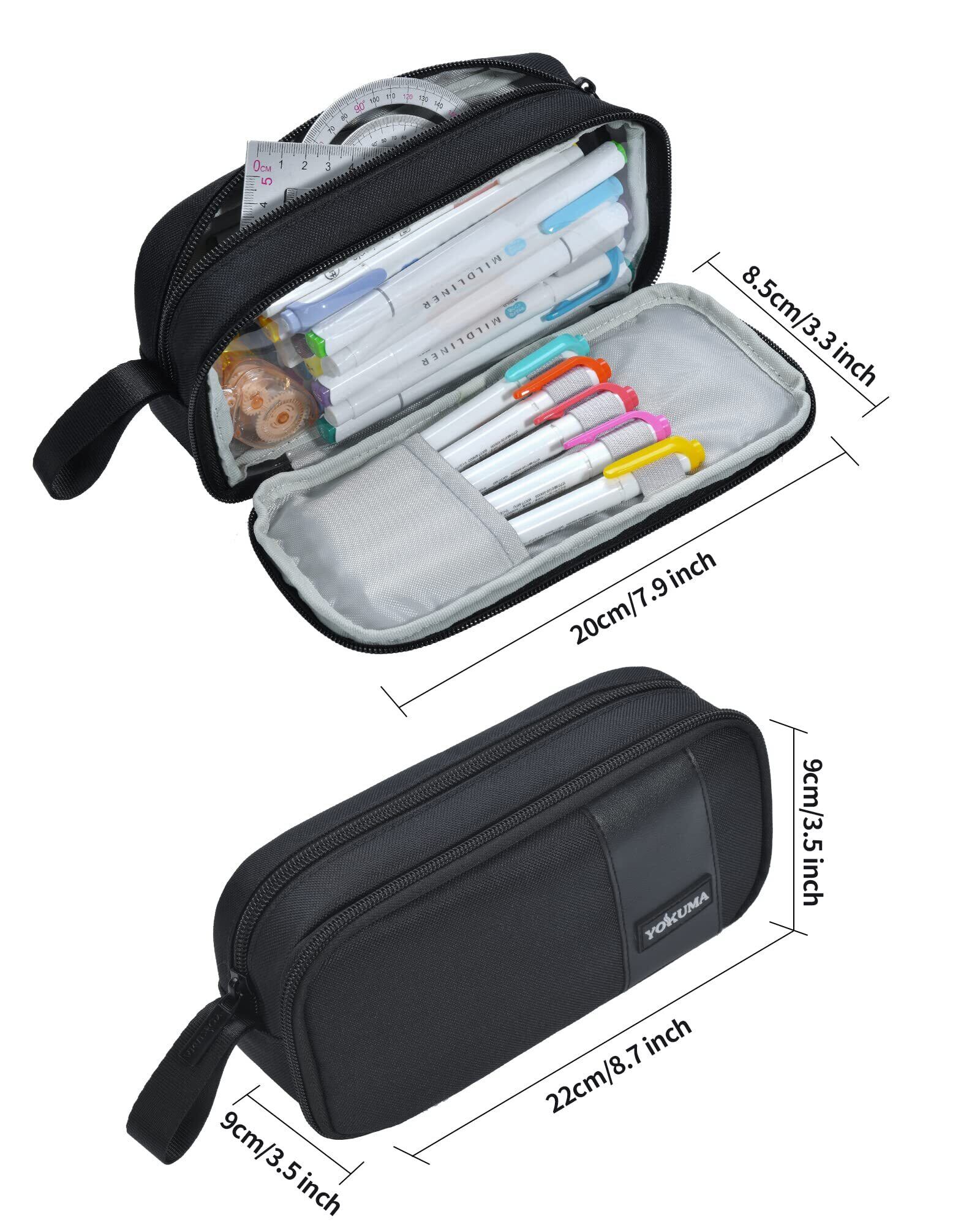 YOKUMA ペンケース 筆箱 ポーチ 透明な窓 クリア ペンポーチ おしゃれ シンプル 大容量 多機能 大人 高校生 中学生 男の子 女の子 大学生 小学生 子供用 (ブラック)