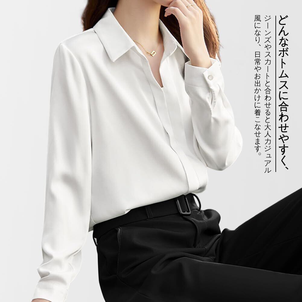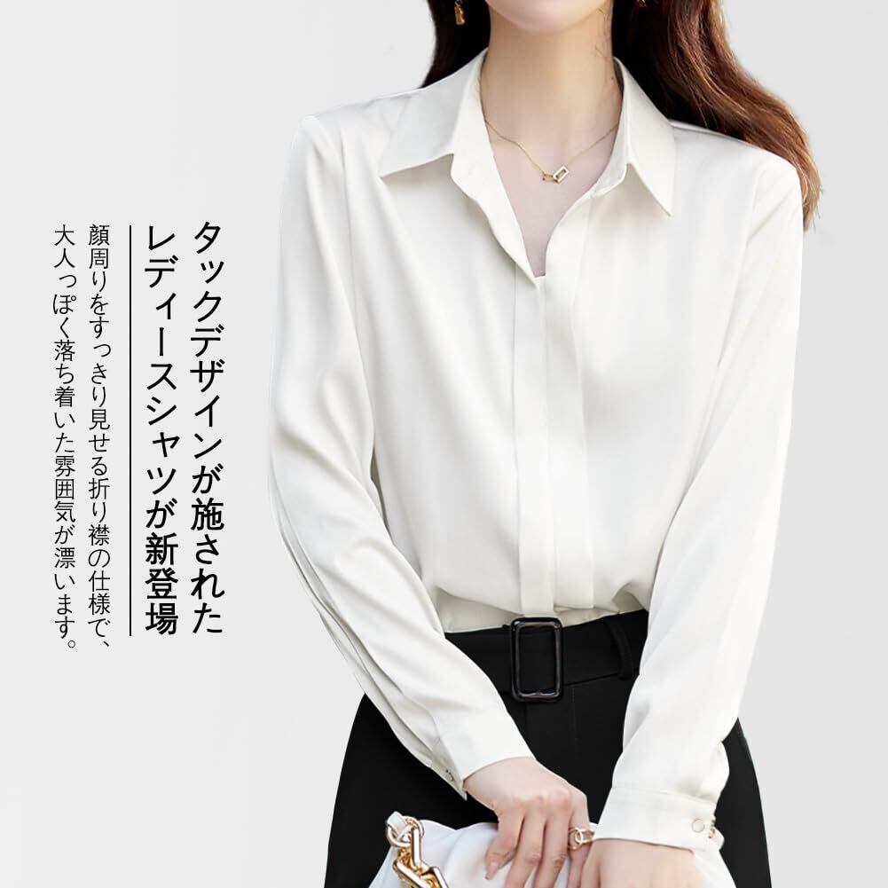 【2022最新】[Ladyangel] シャツ ブラウス レディース サテン トップス 長袖 タック 折り襟 柔らかい 着痩せ 無地 シンプル きれいめ エレガント ワイシャツ 日常 オフィス カジュアル 通勤 春 秋