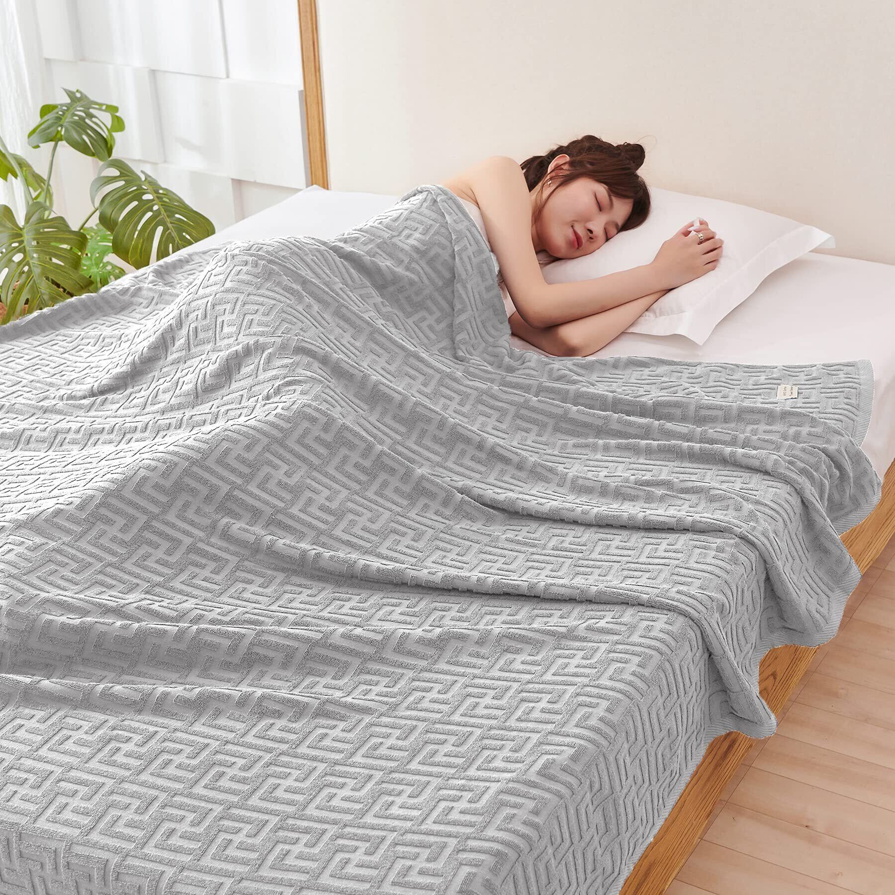 【在庫処分】AYO タオルケット シングル ブランケット 綿100% コットン おしゃれ エアーケット キルトケット 速乾 抗菌 肌掛け 軽量 柔らかく肌触り 毛玉が出ない 毛布 オールシーズン 夏用 ソファー用 丸洗いOK 吸湿速乾(グレー,140*190cm)