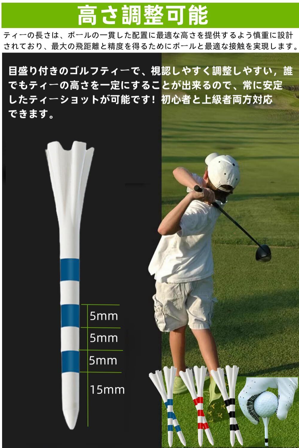 YFFSFDC ゴルフティー ロングティー 83mm 目盛り付 高さ調整可能 低抵抗でショットが安定 プラスチックティー ゴルフ 用品 アクセサリー 贈り物 20本セット