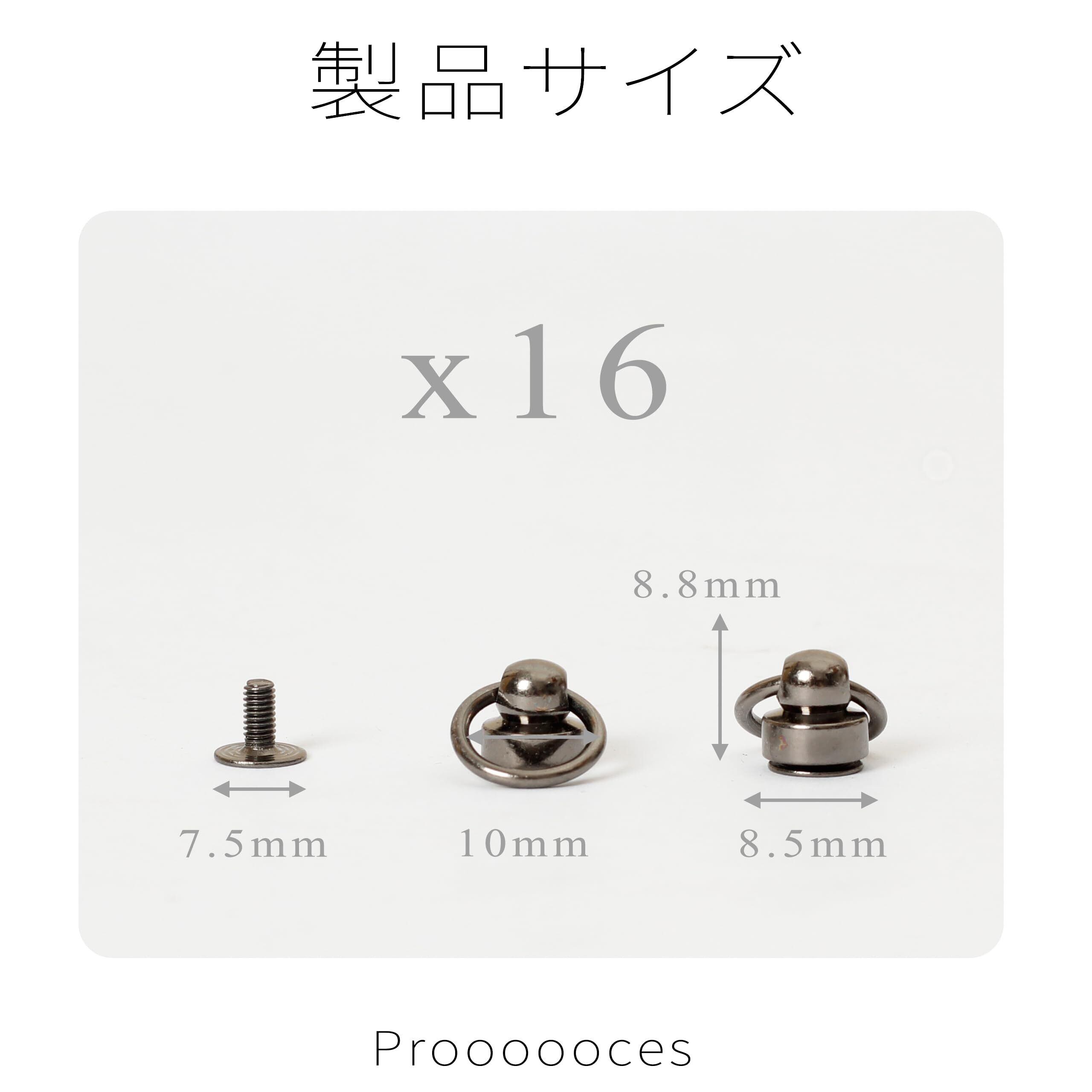 リベット スタッド ジョイント金具 真鍮 16個入り ネジ入り 回転式 止め金具 バッグ ハンドル ドロップハンドル 財布 レザークラフト 材料 DIY ハンドメイド パーツ 3
