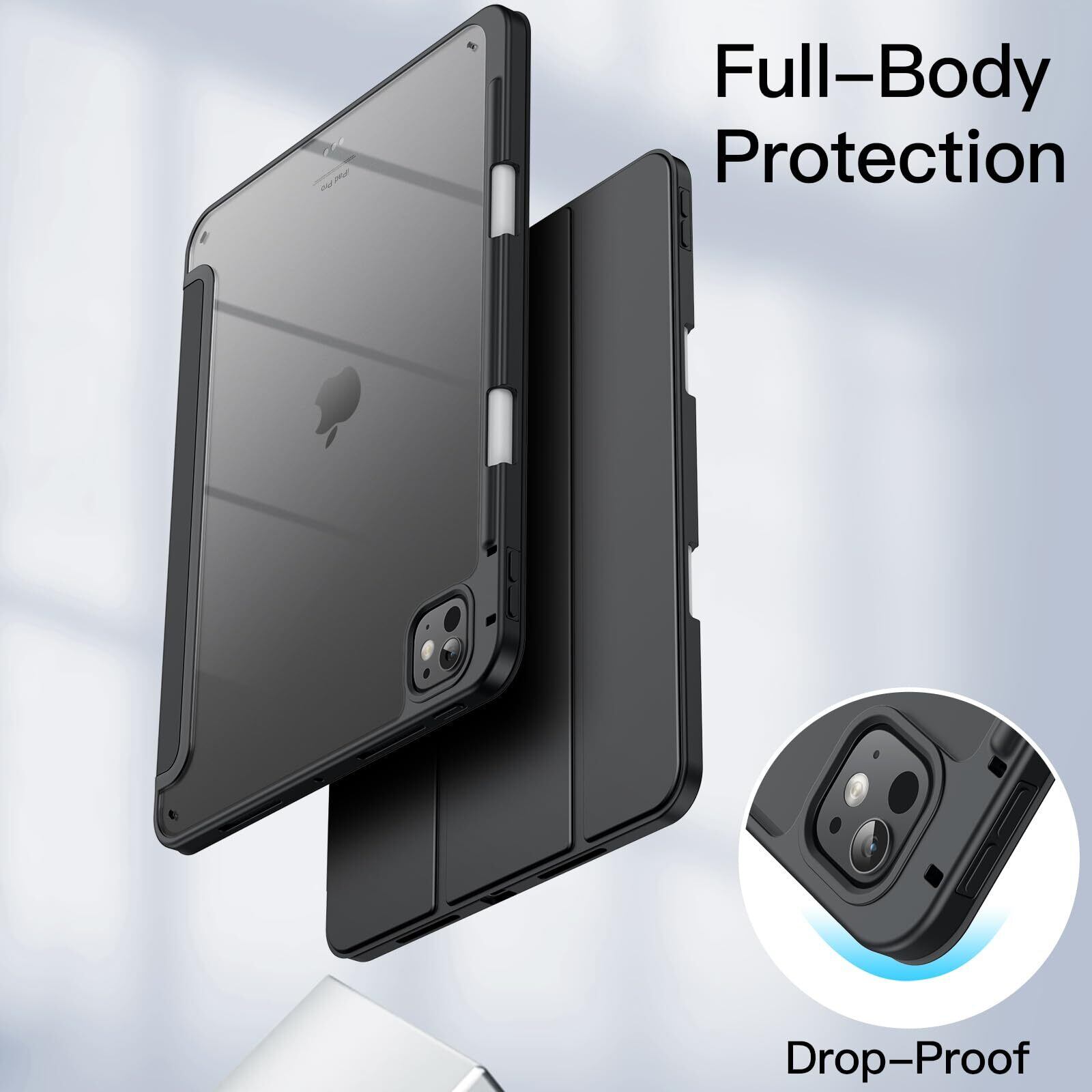 JETech iPad Pro 11インチ M5/M4 2025/2024 (第6/5世代) 用ケース Pencilホルダー付き 透明バックカバー スリムスタンド 衝撃吸収 タブレットカバー オートウェイク/スリープ機能 (ブラック)