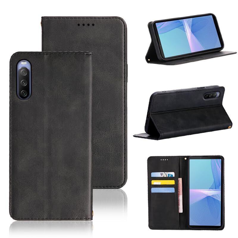 【特価セール】適用 Xperia 10 III SO-52B SOG04 ケース 手帳型 適用 Xperia10 III Lite XQ-BT44 手帳型 ケース カバー PUレザー カード収納 財布型 耐衝撃 ケース マグネット スタンド機能付き 5色 (ブラック)
