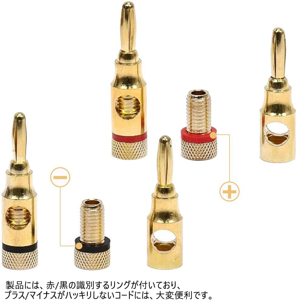 サムコス バナナプラグ ねじ込み式 ソルダーレススピーカーケーブル用 24K金メッキ コネクタ 赤黒4セット 8本