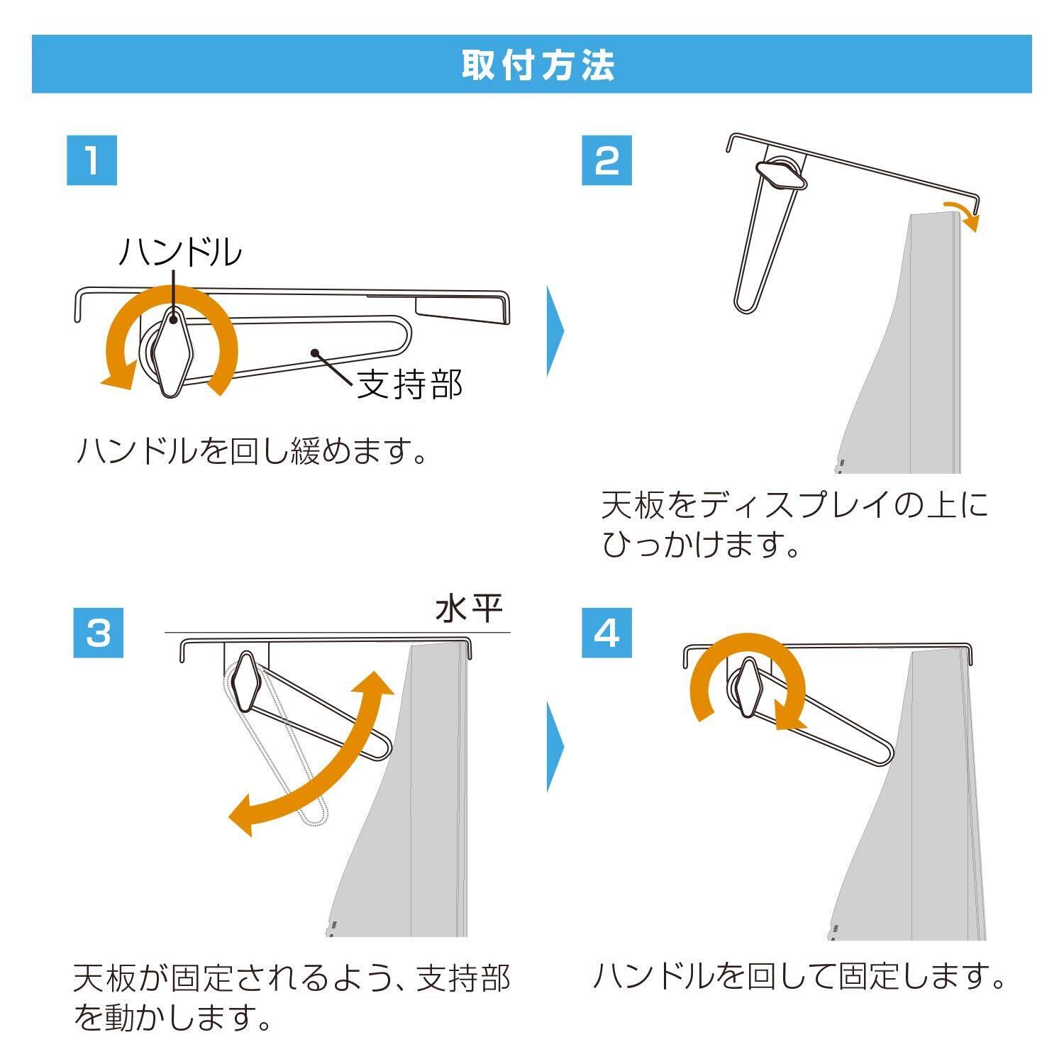 工具不要でディスプレイやテレビの上面に小物などを置けて、スペースを有効活用!