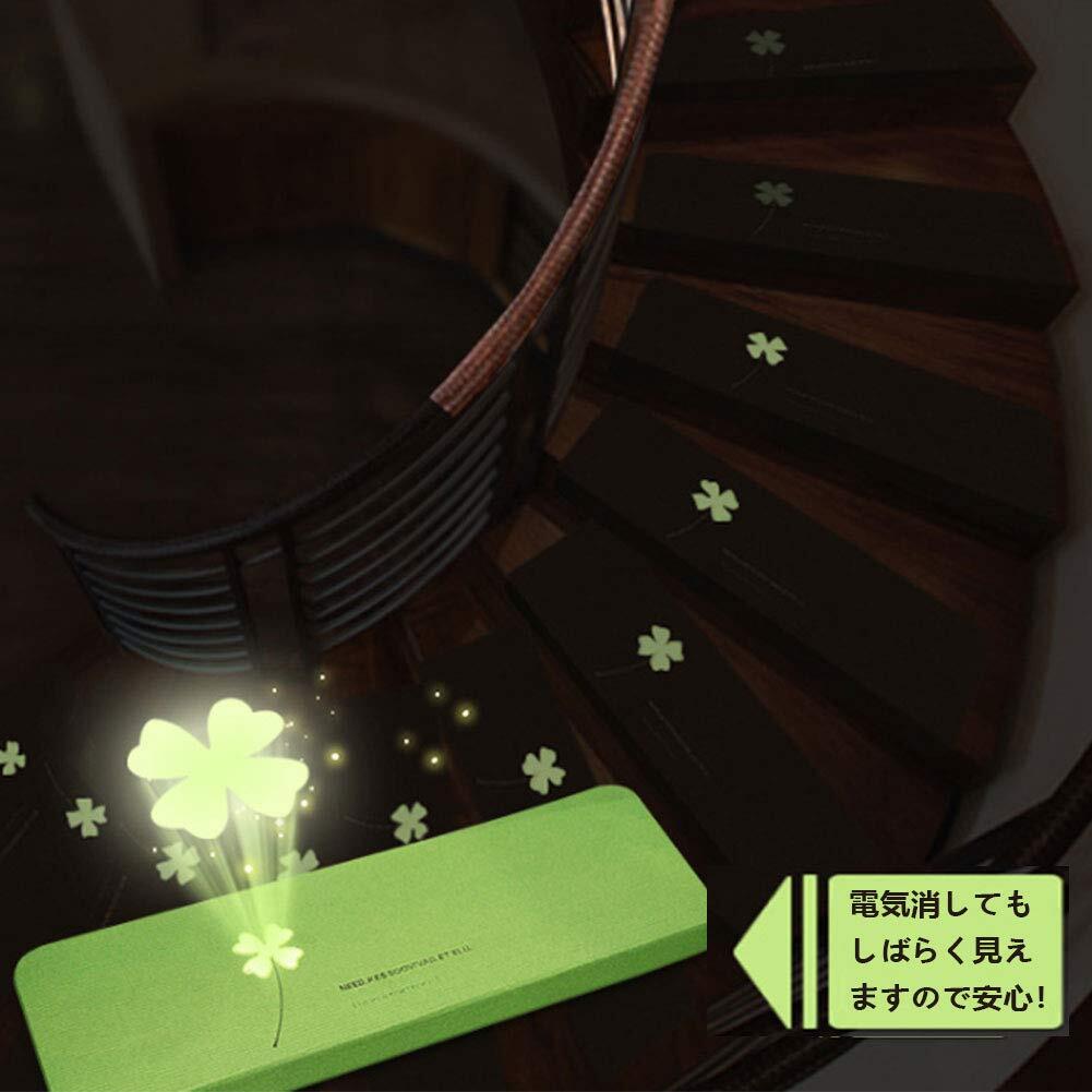 MINIU 階段マット 滑り止め 蛍光 洗える キズ防止 折り曲げ 防音 70*22*4.5cm (緑 四つ葉, 15枚入)