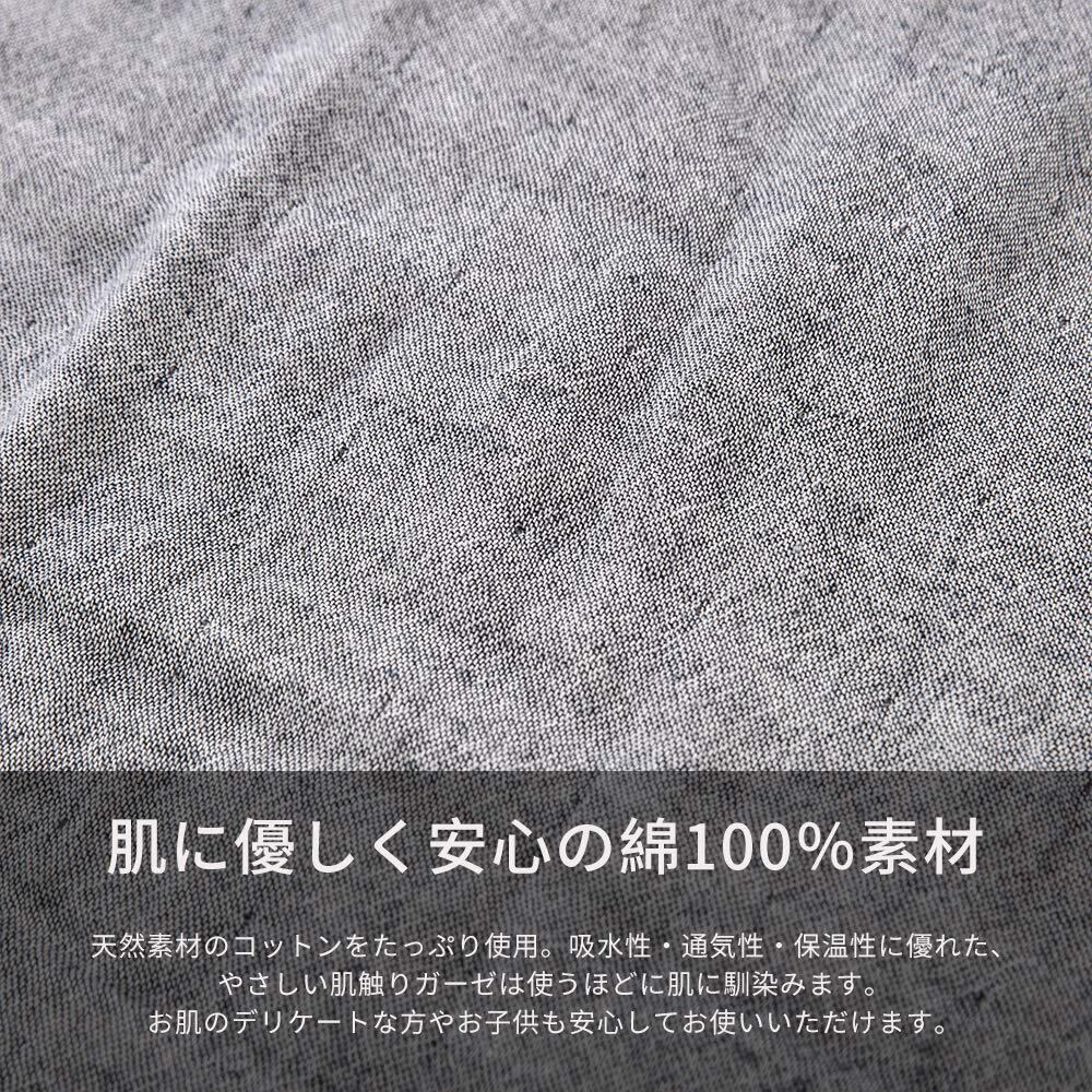 【肌に優しく安心の綿100%素材】天然素材のコットンをたっぷり使用。吸水性・通気性・保温性に優れた、やさしい肌触りガーゼは使うほどに肌に馴染みます。 お肌のデリケートな方やお子供も安心してお使いいただけます。