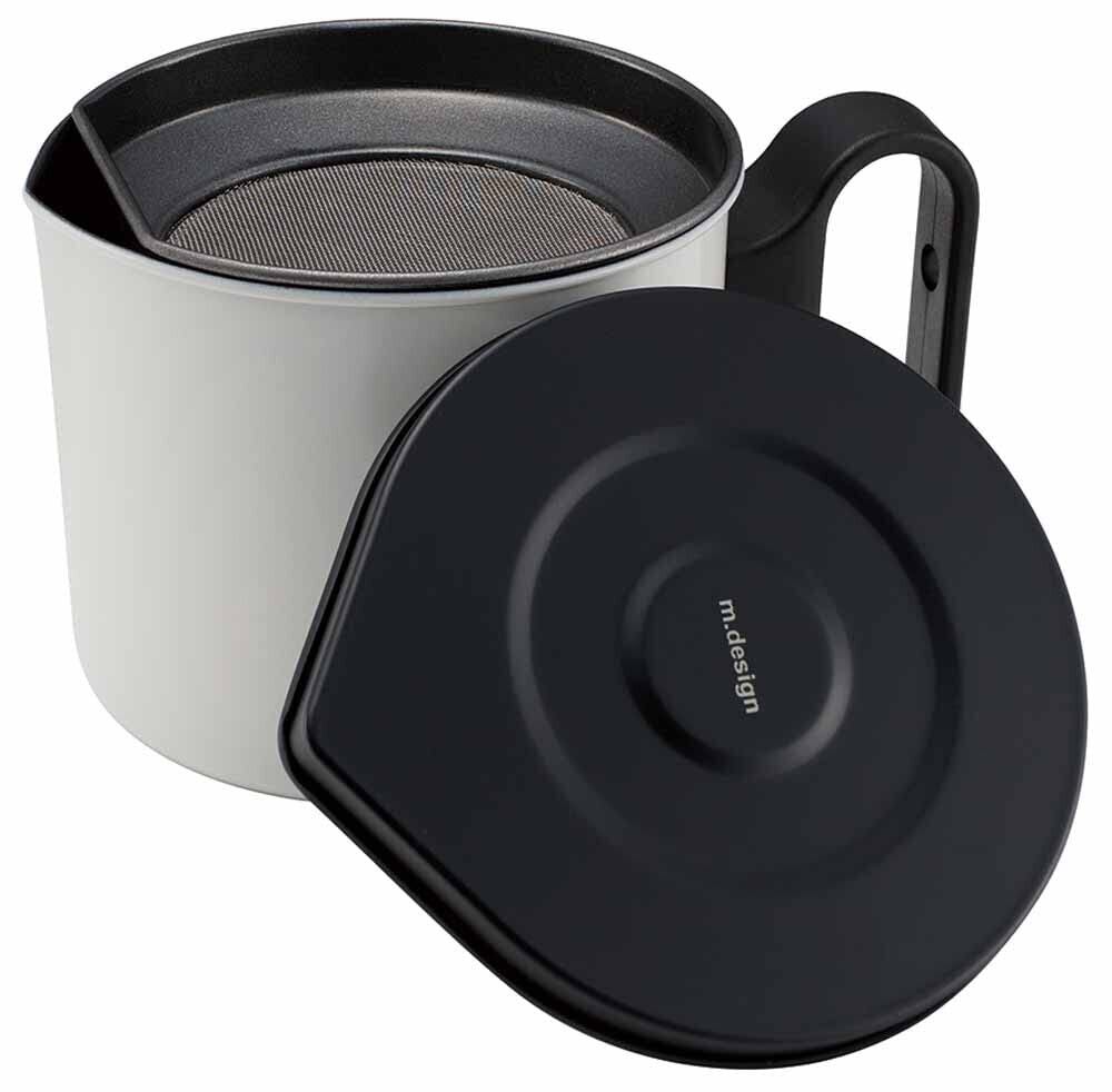 万年 mannen m.design オイルポット mini 0.8L お手入れ簡単 収納に便利 コンパクト 油切れの良い濾しアミ ホワイト LMD-10