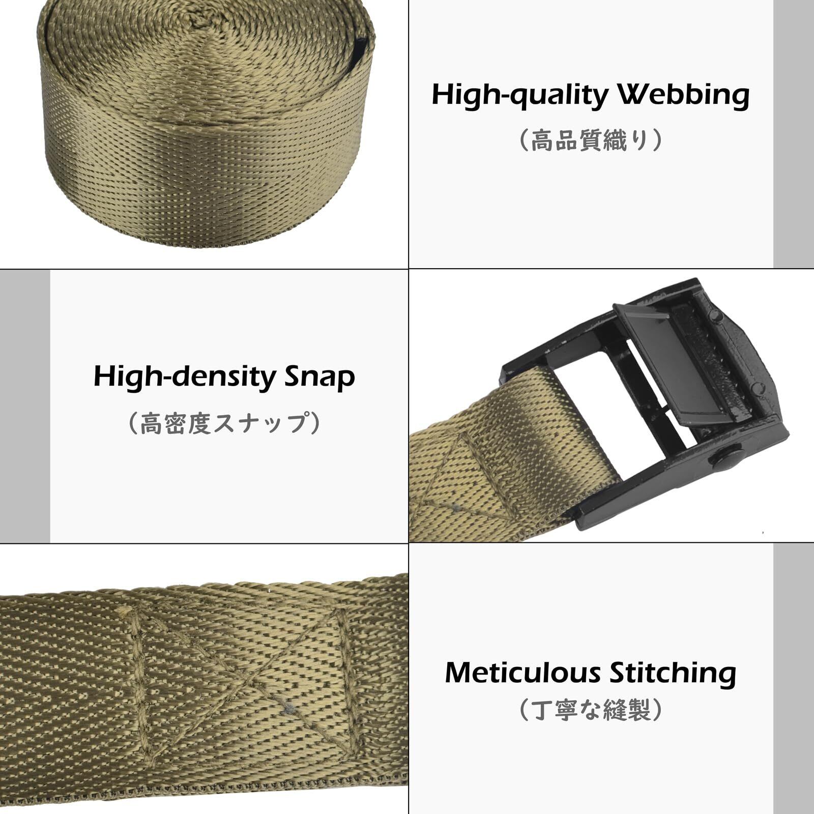 【ワンタッチ操作・カム式固定】レバーを押すだけで締め付け・解除ができるカムバックル式を採用。ラチェット式のように強い力は不要で、荷締めや結束作業をスムーズかつ確実に行えます