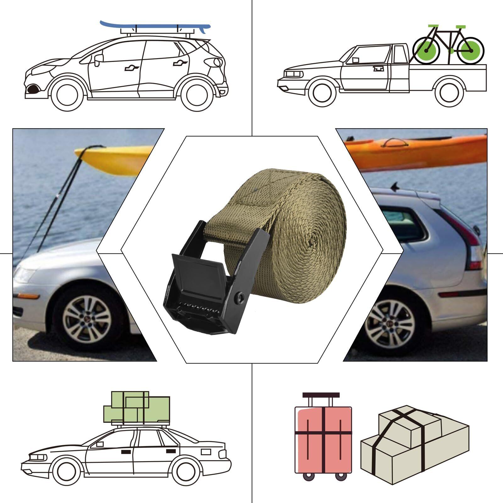 【多用途で幅広く活躍】引っ越し・荷造りをはじめ、自動車・バイクの積載、車内やルーフキャリアでの荷物固定に対応。さらに、アウトドア用品の固定、キャンプ・DIY作業、防犯カメラ設置の補助など、さまざまな実使用シーンで活躍します