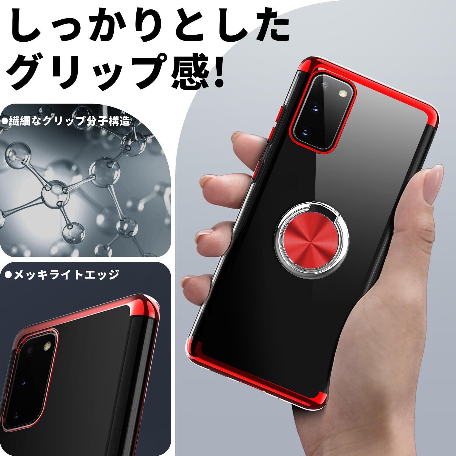 ケース 対応 Xperia 5 II 用の ケース リング クリア 耐衝撃 SO-52A SOG02 カバー 透明 TPU 軽量 薄型 ストラップホール付き 黄変防止 360°回転 車載ホルダー 赤 2-XP5 Ⅱ-03