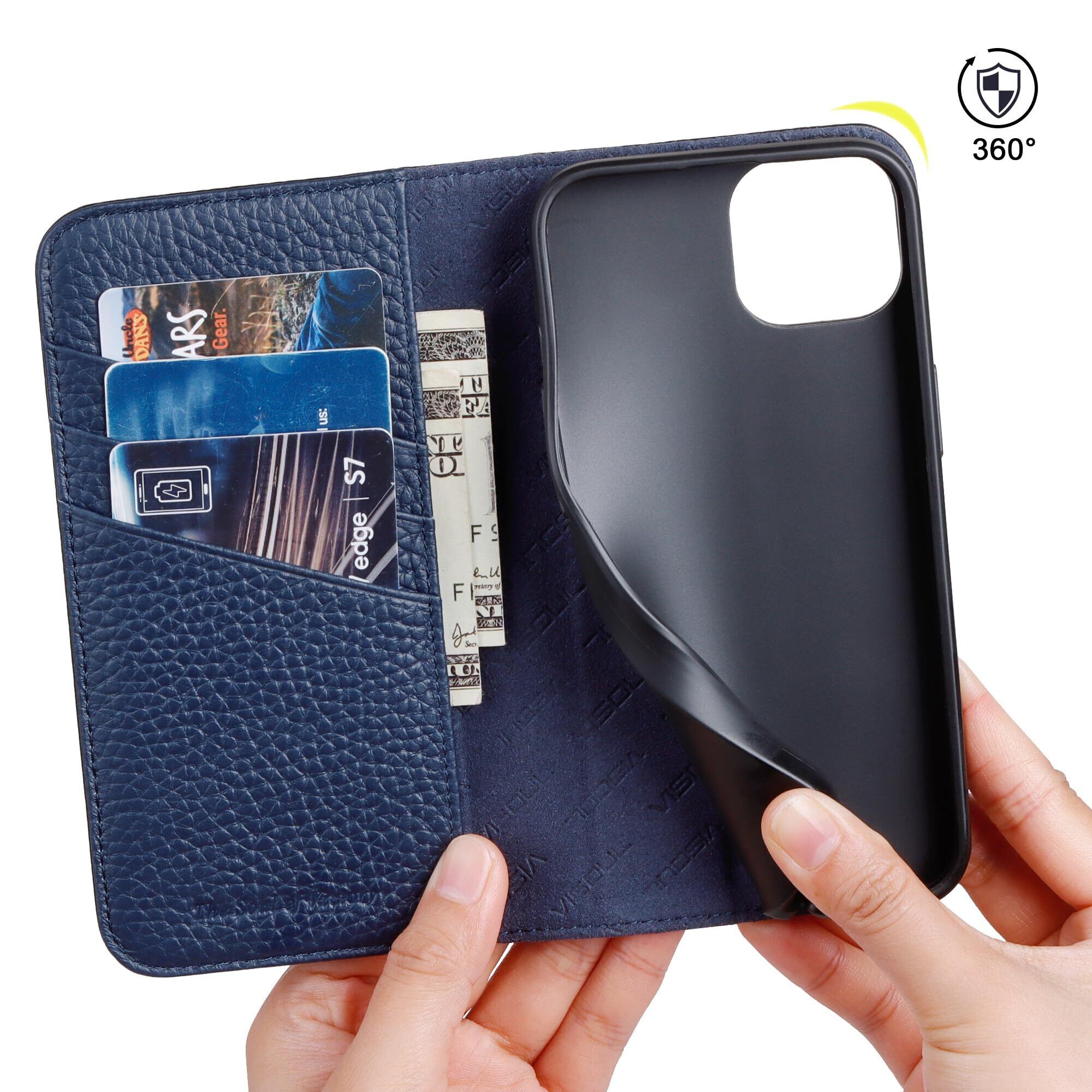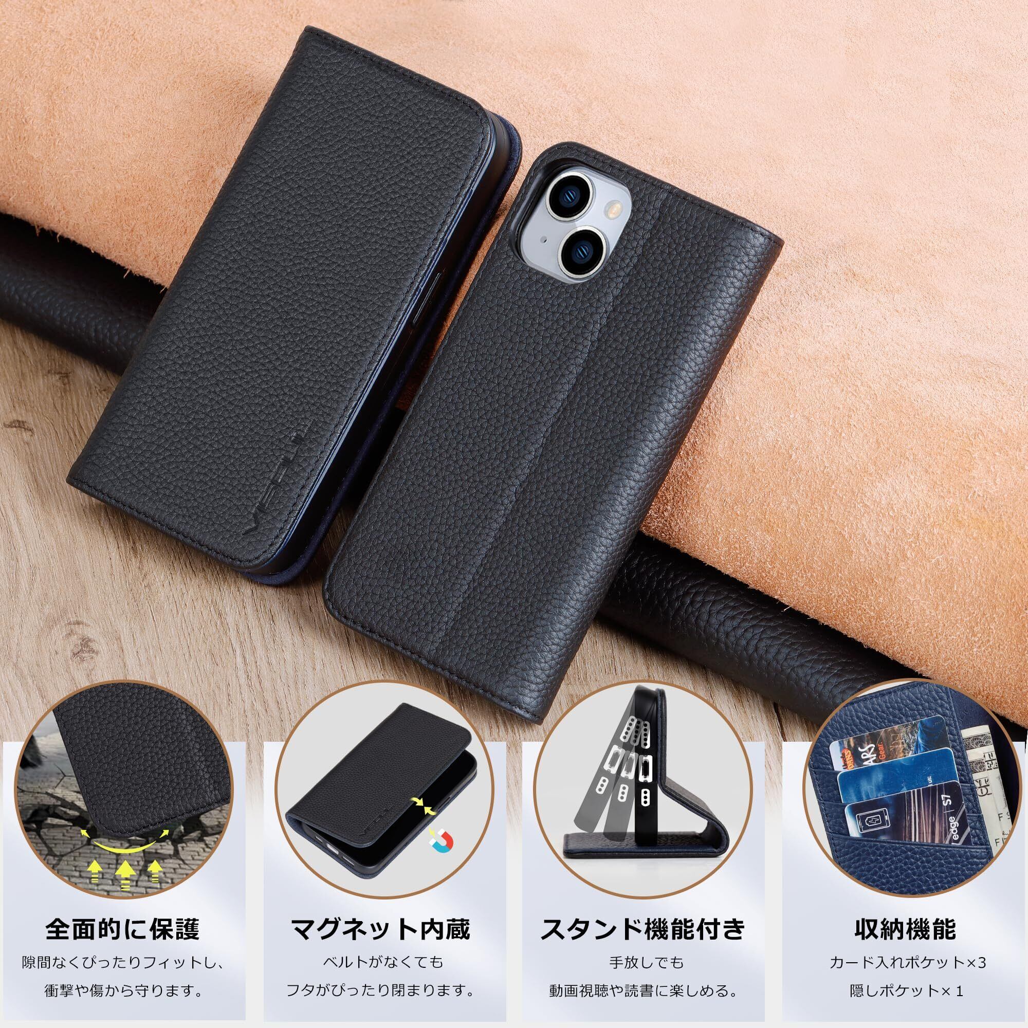 【特価セール】VISOUL iPhone15 対応 ケース 手帳型 本革 MagSafe対応 アイフォン15 手帳型ケース スマホケースレザー カード収納 携帯ケース あいふぉん15 マグネット式 全面保護 スタンド機能付き 6.1インチ アイホン15 ネイビー