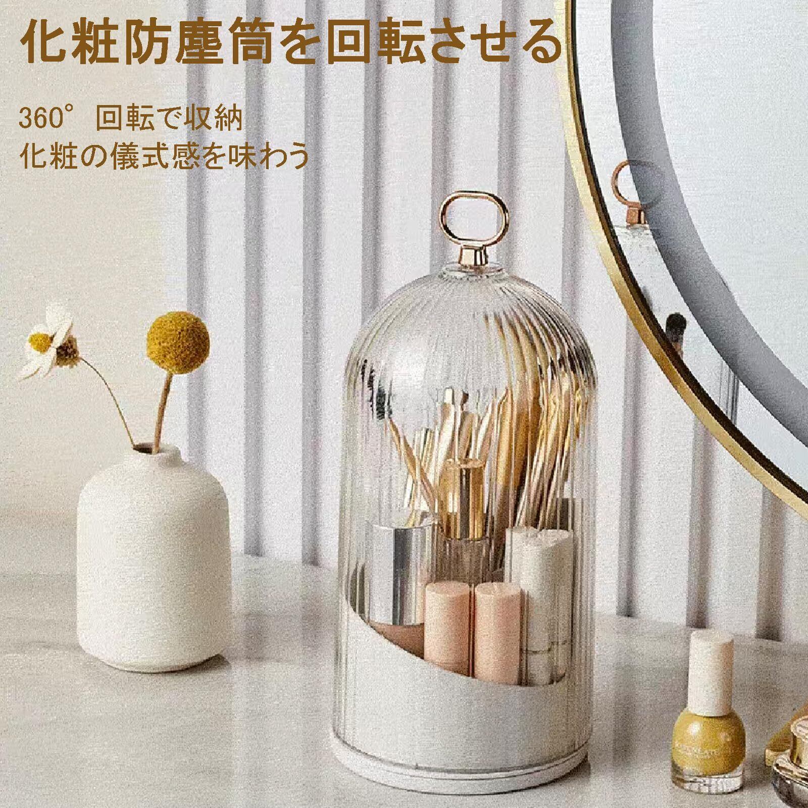 メイクブラシボックス メイク収納 蓋付き メイクブラシケース 360°回転 透明 防水防塵 クリア 収納ケース 大容量 化粧ブラシ整理 ケース ホームメイクアップ整理 メイクブラシスタンド(ホワイト)