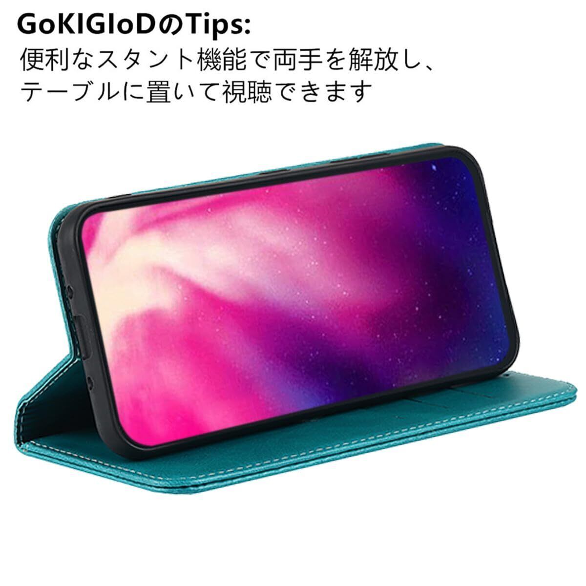 iphone 15 pro 左利き用 ケース 手帳型 ストラップ iPhone15pro 左手 手帳 適用 アイフォン 15 プロ 左利き アイフォン15プロ スマホケース 右開き カバー いphone15pro case phone15proケース 【GoKIGIoD】 左手用 財布型 内蔵マグネット 弱磁 スタンド カード収納 ストラップホール カードケース レトロ ターコイズ