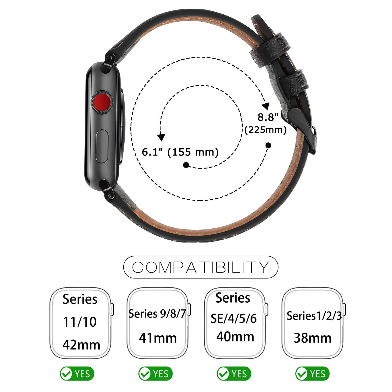 コンパチブル Apple Watch バンド 42mm(シリーズ 11/10) 41mm 40mm 38mmアップルウォッチ バンド, 高級 本革 交換バンド ビジネス Apple Watch シリーズ11/10/9/8/7/6/5/4/3/2/1/SE3/SE2/SE 用 (ブラック)