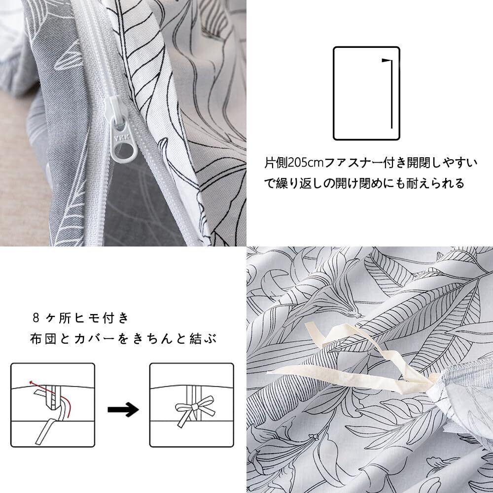 【高品質の生地】弊社はお客様により良い掛けふとんカバーを提供するため、100%の上質な綿素材を使用し、200本の糸を使用した布地を、透湿性に優れ、毛玉が少なく、柔らかく快適な睡眠を提供、四季に適した仕様であり、抗菌・防臭加工が施され、肌に優しい素材です。