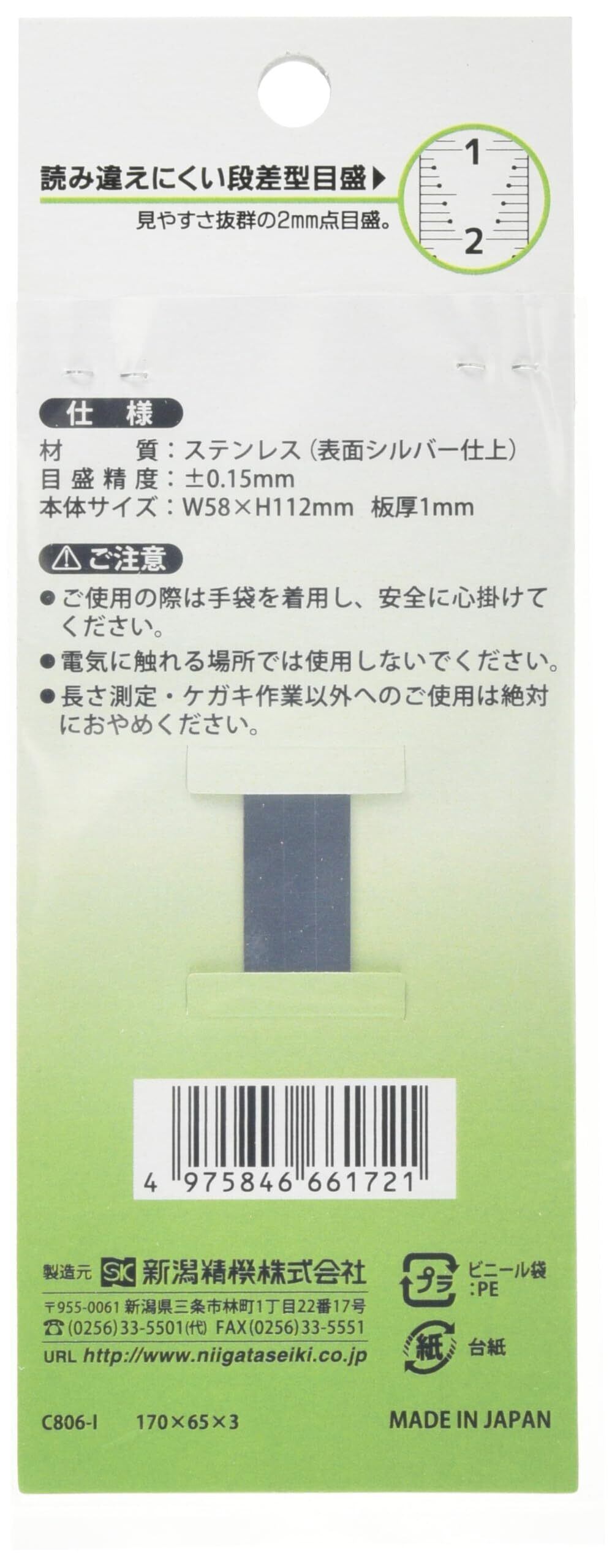 1mm単位の目盛りが読みやすい段差型目盛です。