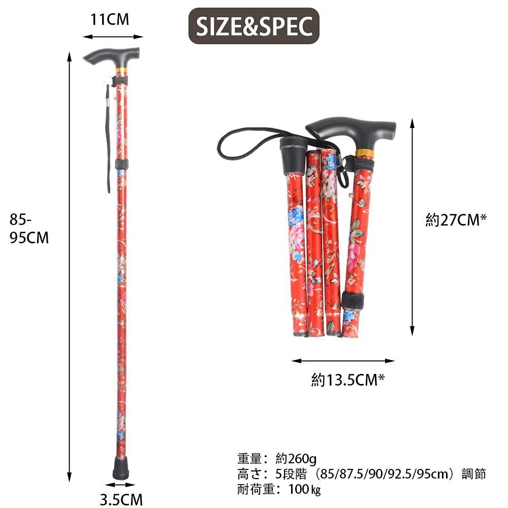 【特価セール】ステッキ 杖 つえ 折りたたみ杖 自立式 ゴム足 伸縮可能 杖長82-92cm 5段階調節 歩行 補助 女性 男性高齢者 母の日 父の日 敬老の日 プレゼント