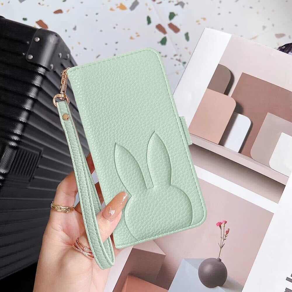iPhone 11ケース 手帳 iPhoneXR ケース 財布型 アイフォン11 スマホケース 美しい 気質 動物 兎 アイホン11 カバー かわいい 手触りがいい あいふぉんXR 手帳型ケース カード収納 シンプル 女性 人気 上品 おしゃれ 携帯カバー スタンド機能 iPhone 11 保護ケース 衝撃吸収 (iPhone 11/XR 兼用 6.1inch対応) グリーン