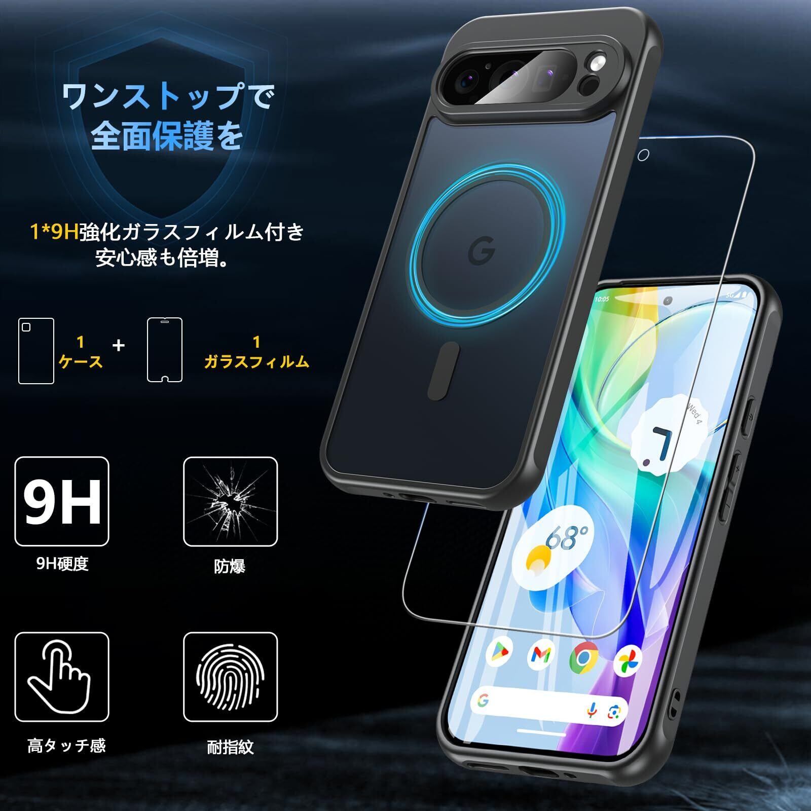 【対応機種・パッケージの内容】Google Pixel 9 Pro XL 6.8インチ対応専用ケースで、対応機種を間違いないようにご購入お願い申し上げます(Pixel9/9Pro非対応)。2024年最新モデル、Pixel 9 Pro XL専用にデザインされた半透明・薄型・magsafe対応・ガラスフィルム付きのケースで、実用的・便利・おしゃれで、年齢やシーンを問わずお使いいただけます。パッケージの内容:ケース*1 ガラスフィルム*1 セットのインストールパッケージ*1 (注意:この商品はPixel Stand 2充電には対応できません。)