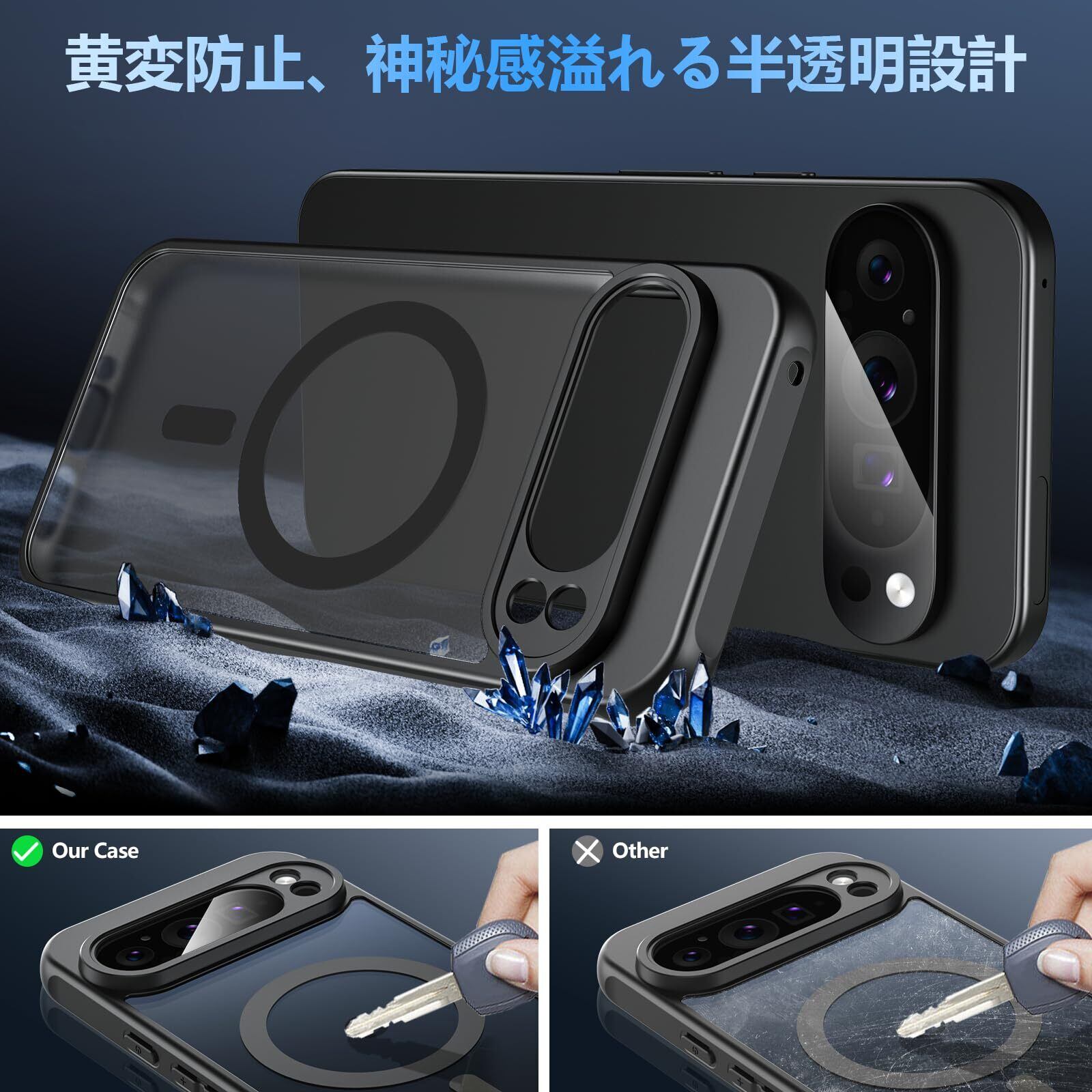 【数量限定】Google Pixel 9 Pro XL ケース BESINPO 【ガラスフィルム付き・MagSafe対応】 Pixel9 Pro XL ケース 半透明 黄ばみなし マグネット搭載 マグセーフ対応 グーグル ピクセル9 プロ XL ケース 全面保護 耐衝撃 レンズ保護 薄型 軽量 指紋防止 ストラップホール Google Pixel 9 Pro XL カバー 6.8インチ ブラック