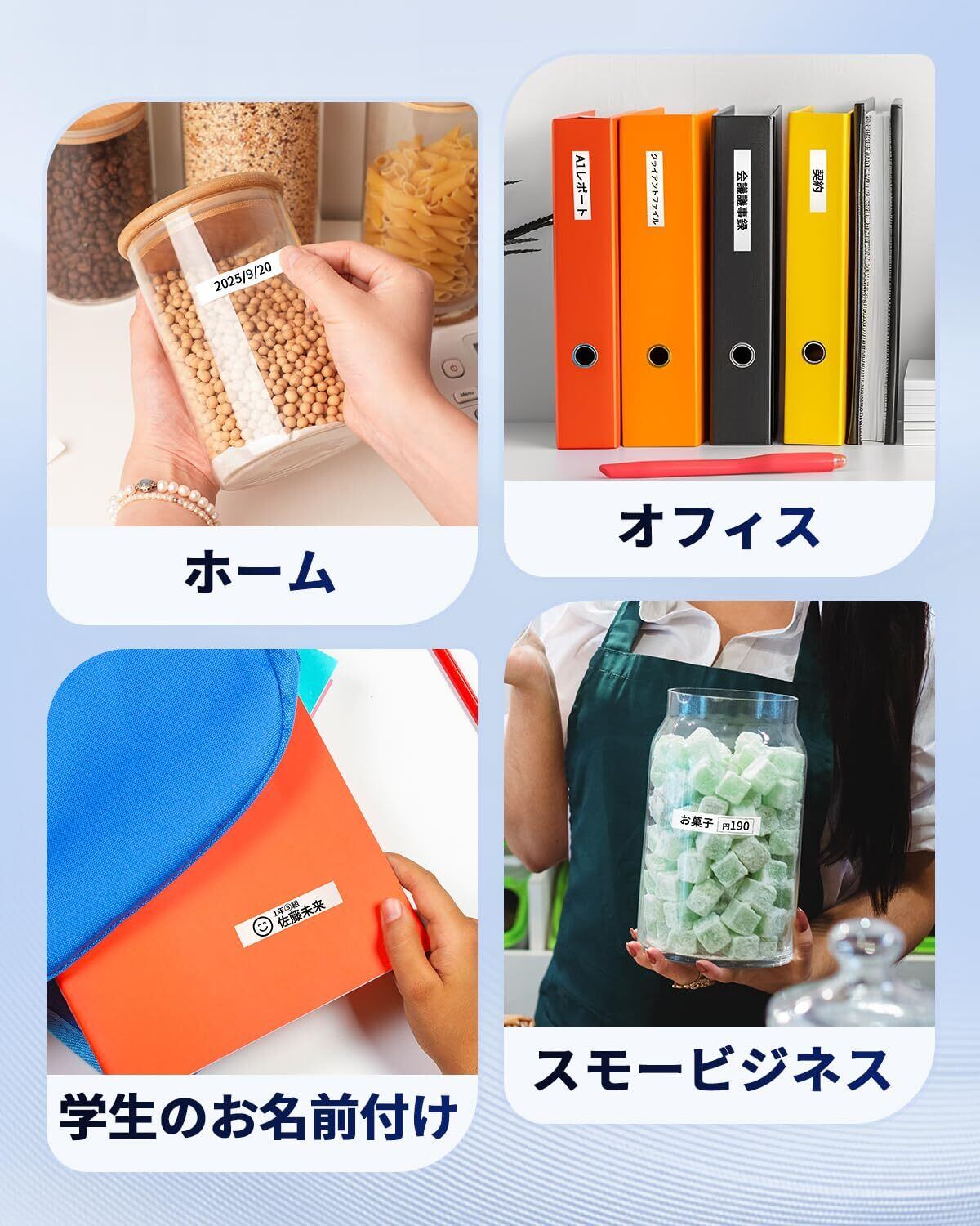 【使いやすさを考慮した設計!】12mm幅で、さまざまなラベルサイズに対応。切り離しも簡単で、手軽に利用できます。ラベル作りが初めての方でも安心してご使用いただけます。
