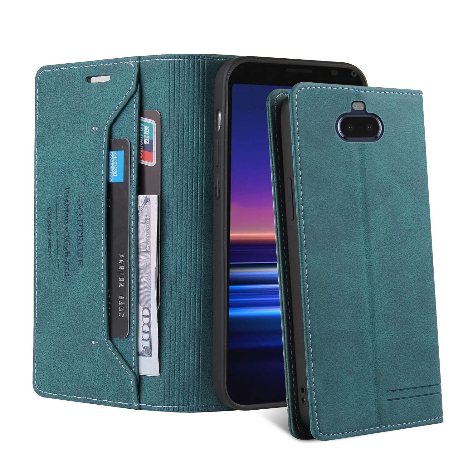 UnivoColors Sony Xperia 8 (SOV42/902SO)/Sony Xperia 8 Lite 兼用手帳型ケース 高級合皮 スタンド機能 カード収納 マグネット式 TPUソフトカバー 全面保護 カメラ保護 衝撃吸収 RFIDブロッキング おしゃれ カバー(青緑)