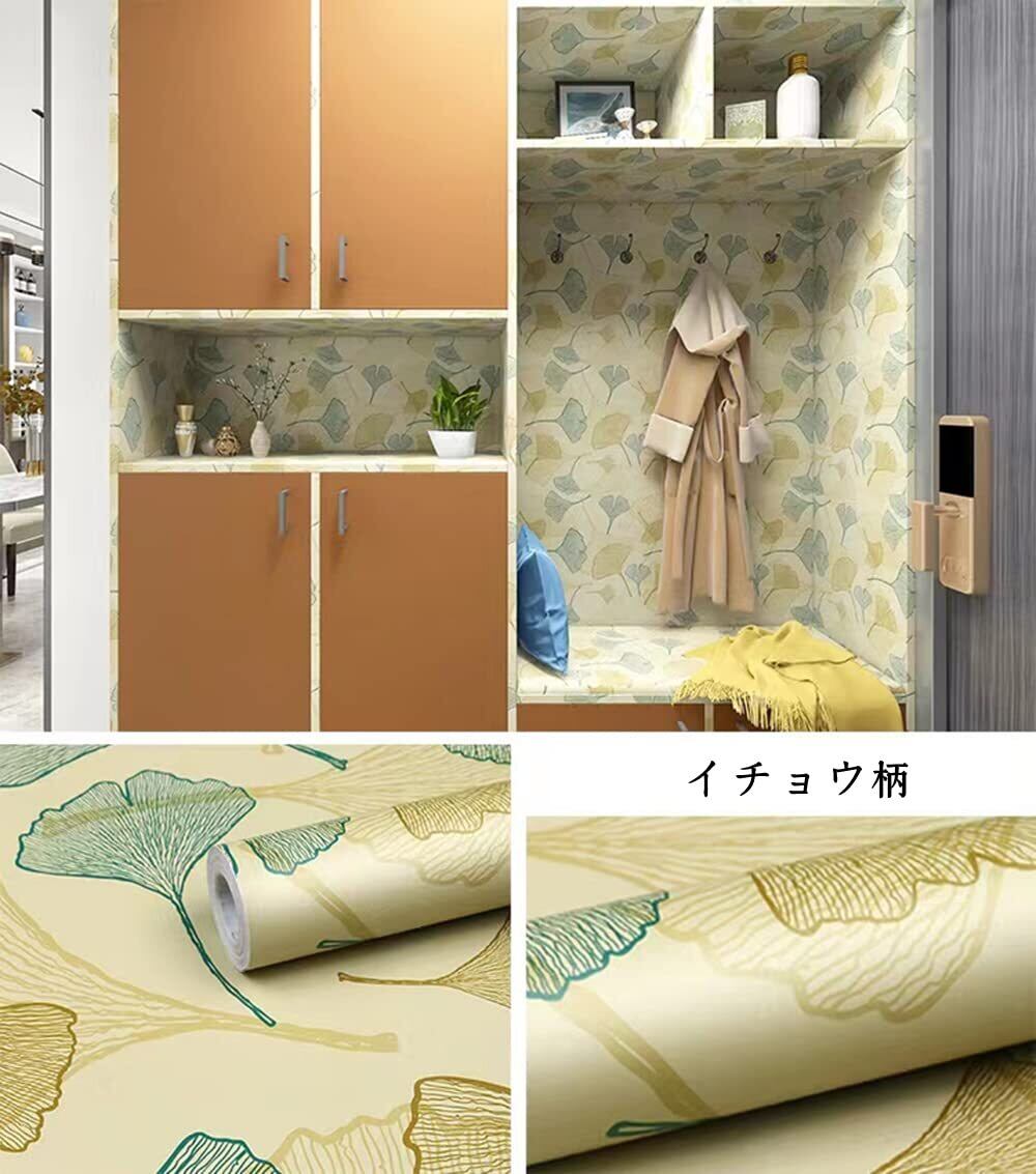 Homya 壁紙 シール 剥がせる リメイクシート 防水シール 45cm*10m リフォームシート 防カビ カッティングシート のり付き イチョウ葉