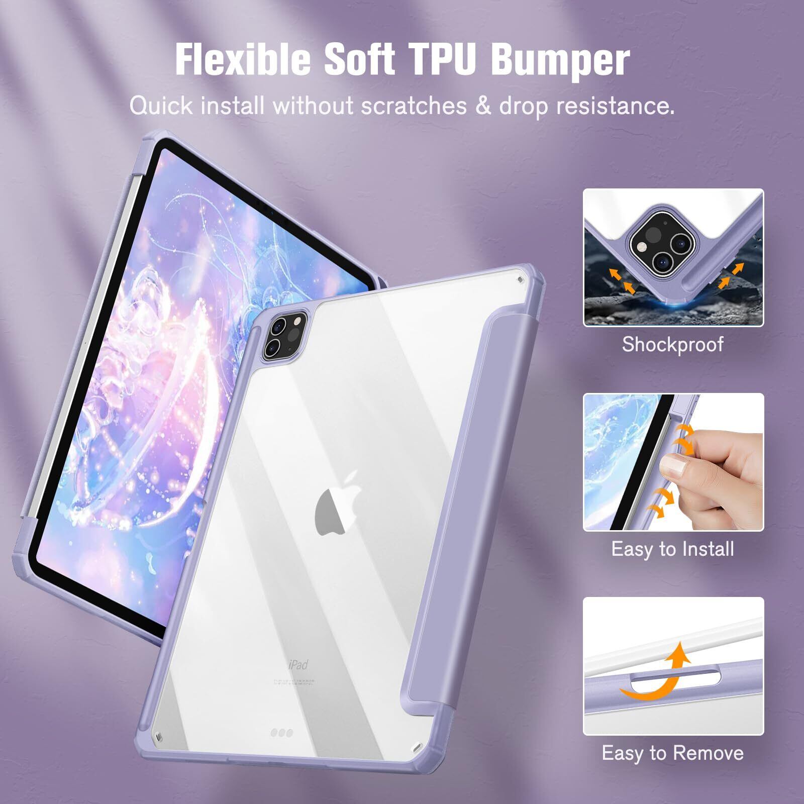 Fintie iPad Pro 11 ケース 2022/ 2021/ 2020/2018 11インチ 透明バックカバー Apple Pencil 収納可能 Apple Pencil 2 ワイヤレス充電対応 三つ折スタンド スリープ機能 軽量 薄型 傷つけ防止 PU合成レザー TPU (モデル番号A2435、A2759、A2761、A2762)(ライラックパープル)