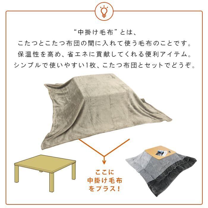 "もふもふ""ふんわり"暖かなマイクロフリースのこたつ中掛け毛布。中掛け毛布とはこたつとこたつ布団の間に入れて使う毛布のことです。ヒーターの暖かい空気を逃がさず、こたつの保温力を高めます。