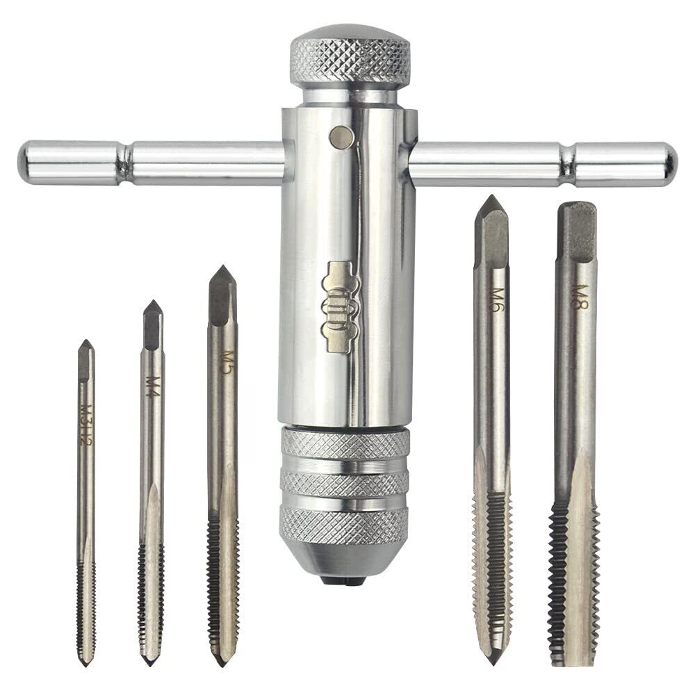WMYCONGCONG ねじタップ ラチェット タップホルダー M3 M4 M5 M6 M8 T型 タップ ハンドル レンチ セット 合金鋼製 調整可能 ねじ切りタッピングハンド ハンドタッピング作業用 6本セット