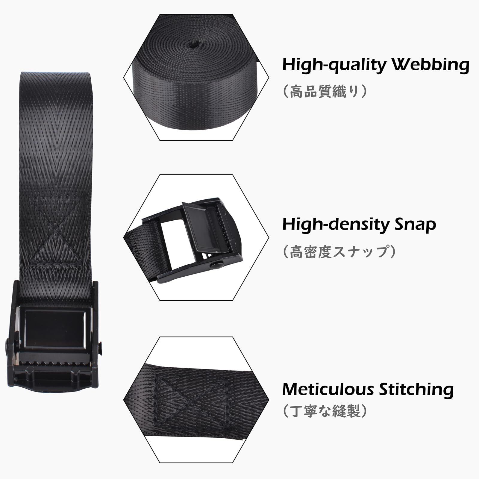 【高強度と耐久性!】厳選された素材を使用したこの荷締めベルトは、強度と耐久性にも自信があります。長期間の使用に耐えられる仕様で、大切な荷物をしっかりと保持します。安心してお使いいただける製品です。