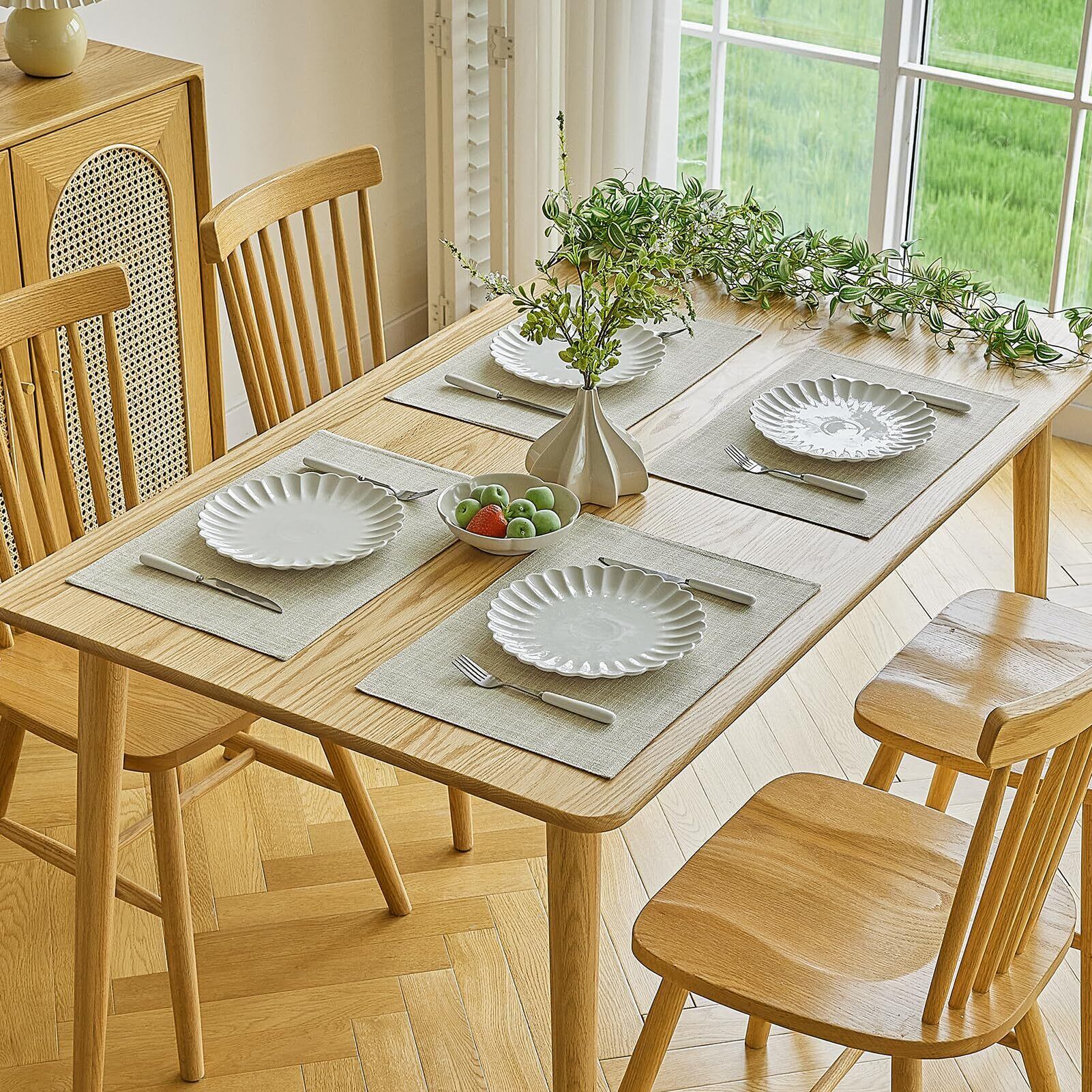 【おしゃれなデサイン】麻風なテクスチャーだけでなく、本店厳選のグレー、ダークグレー、ブラウン、ベージュ、イエロー、グリーン6色展開で、お好みのカラーをお選びいただけます。お客様はさまざまな色のマットを使って食卓の雰囲気を変えることができます。それ以外、お客様は他に好きな色があれば、メールで貴重なアドバイスをしてくれることを歓迎します。私たちはすべてのお客様からのアドバイスに真剣に対応し、できるだけお客様のニーズに対応します.