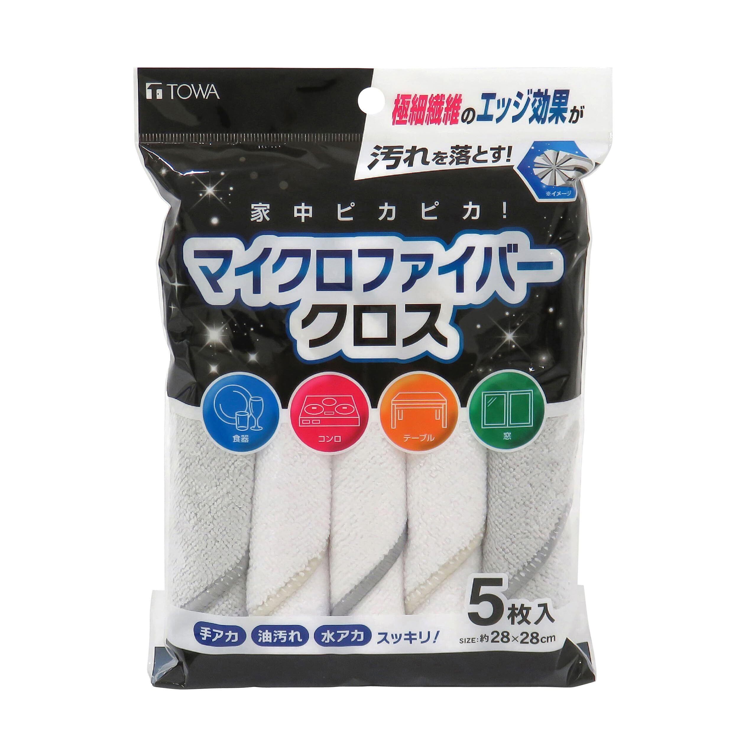 東和産業 NC マイクロファイバークロス 5P ふきん キッチン マイクロファイバー 白 ホワイト グレー 約28×28cm 5枚入 10889